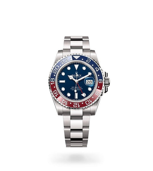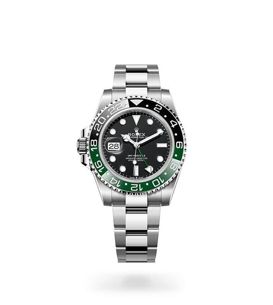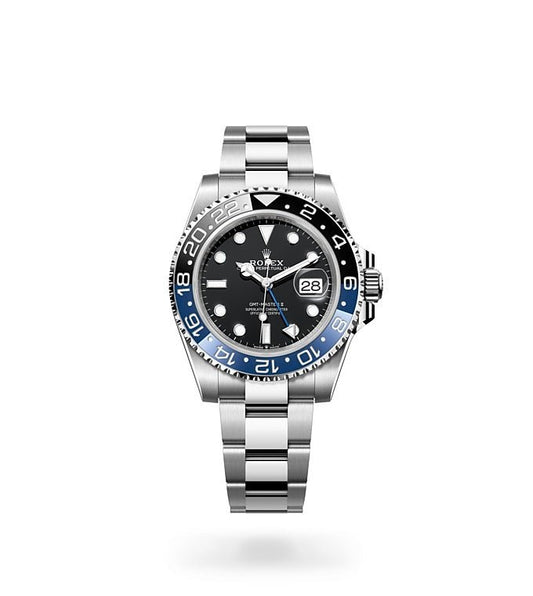 The GMT-Master II has an instantly recognizable design with a graduated bezel insert, which is available in various dual-color combinations – the lower half symbolizing daytime and the upper signaling night-time. With traditional hour, minute and seconds hands, its triangle-tipped 24-hour hand and bidirectional rotatable bezel with a 24-hour graduated Cerachrom insert, the GMT-Master II can display the time in two time zones simultaneously: either the local time and the reference time, or the local time and that of an alternative time zone.