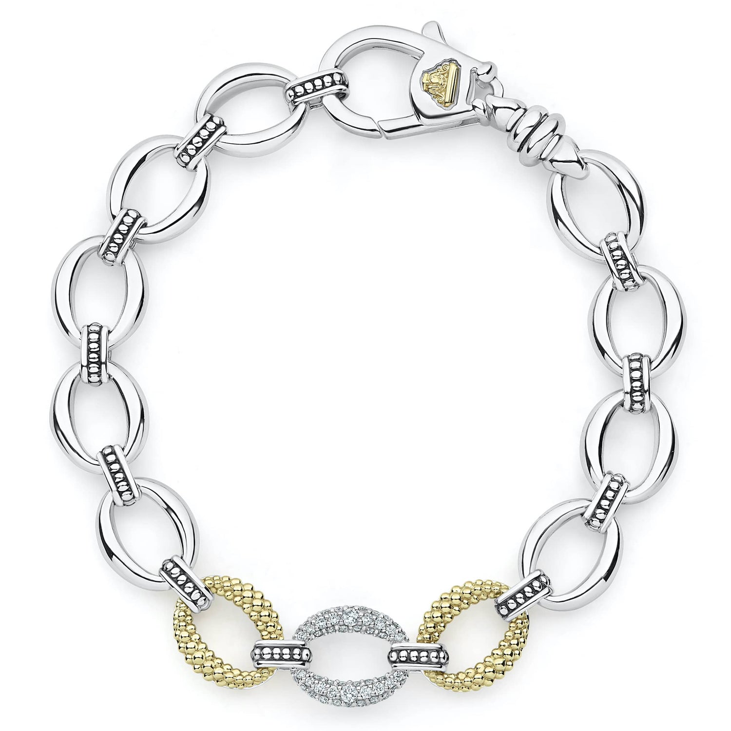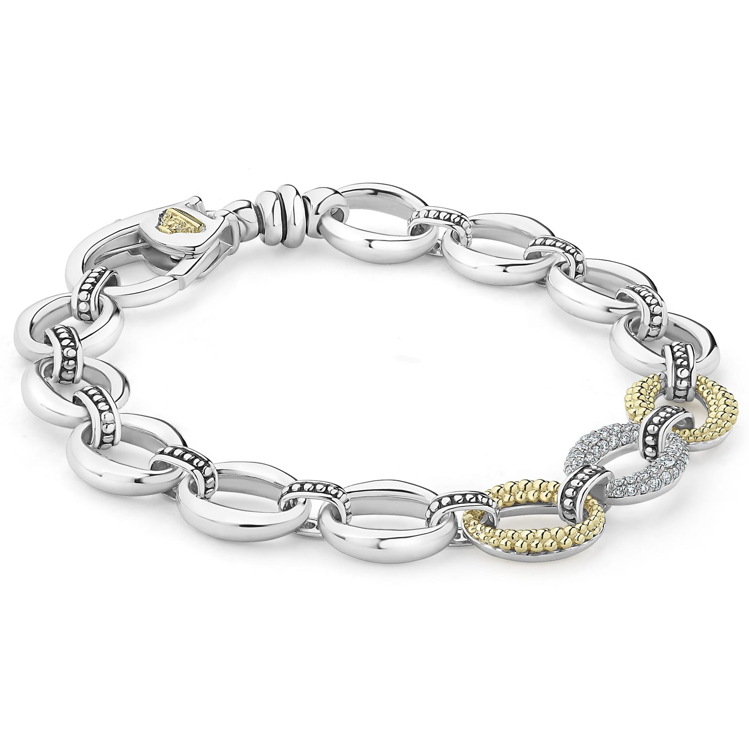 Pavé diamonds, 18K gold and sterling silver create this classic link bracelet. LAGOS diamonds are the highest quality natural stones.