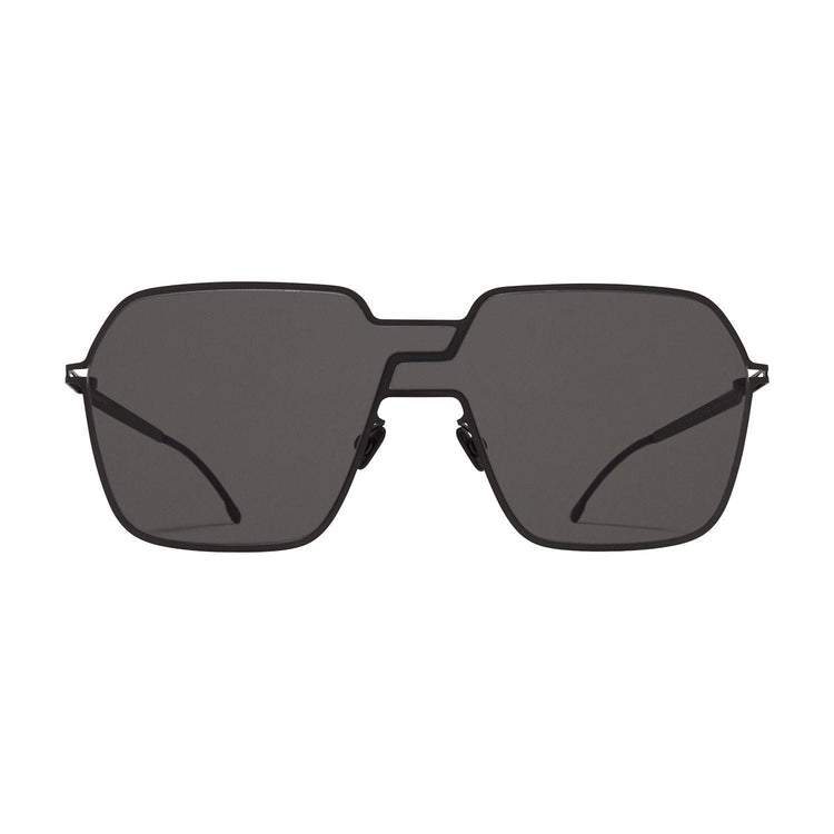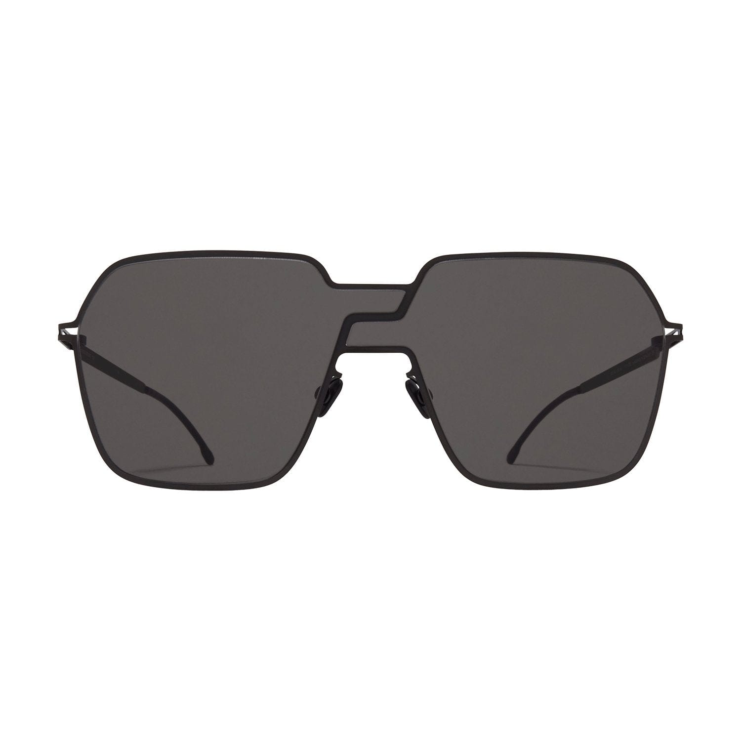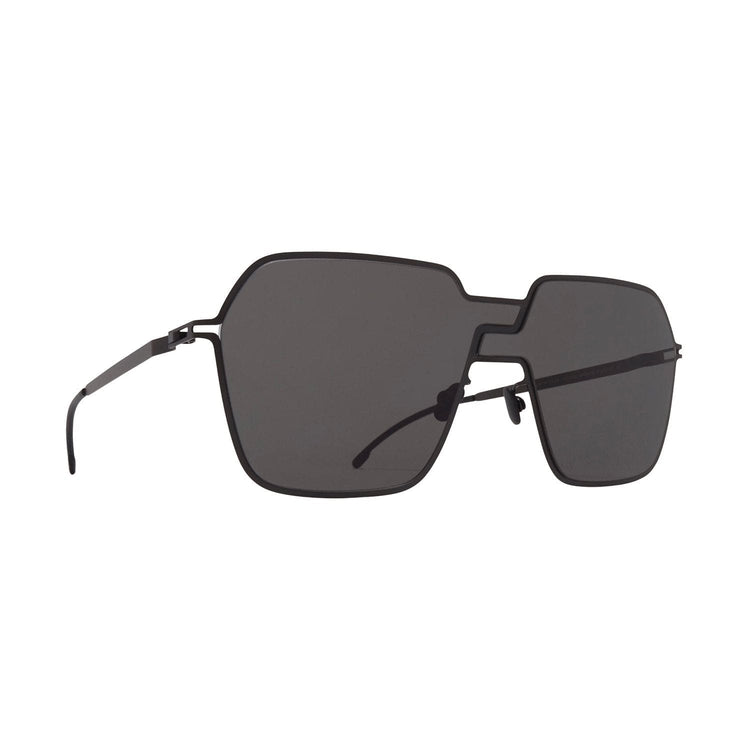 Made of lightweight stainless steel, STUDIO12.3 in Black with Dark Grey Solid lenses is a butterfly shaped sunglass frame with an asymmetrical lens design from the MYKITA STUDIO collection. Handcrafted in Berlin.