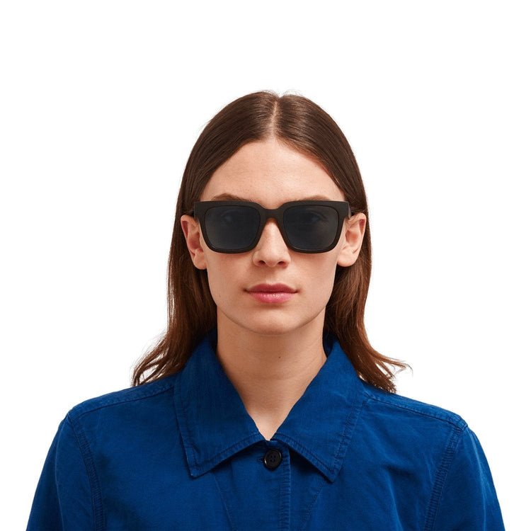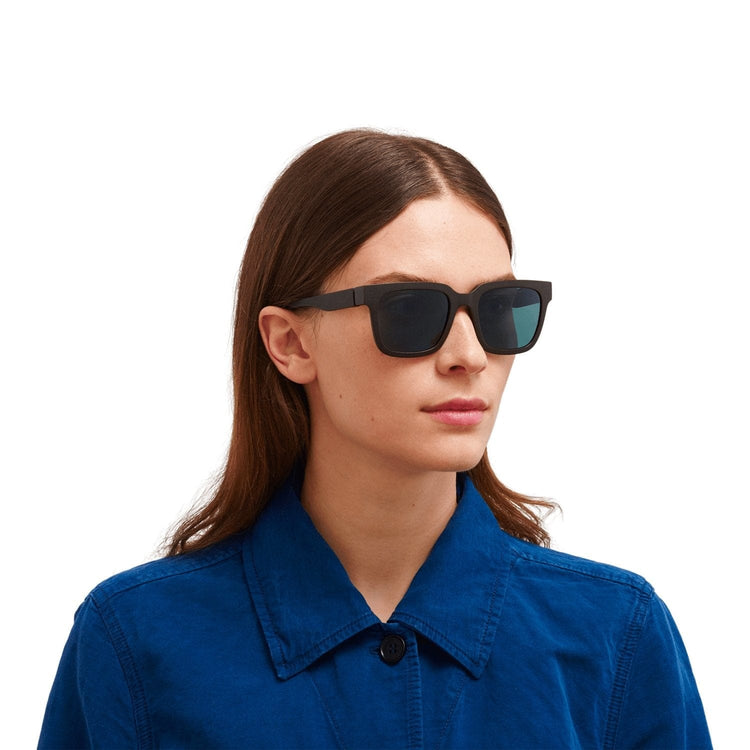 Made of MYLON – an exceptionally light and durable material – DUSK in MD22 Ebony Brown with Polarized Pro Ocean Blue lenses is a square shaped sunglass frame from the MYKITA MYLON collection. Handcrafted in Berlin.