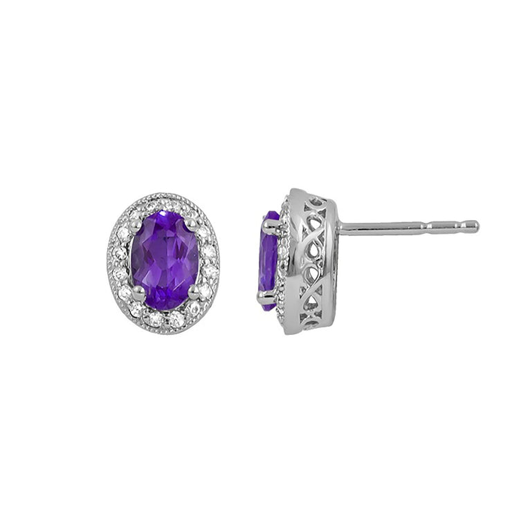 Add a brilliant pop of color to your collection with our Amethyst & Diamond Earrings. Made from 14k white gold, these earrings feature vivid oval amethysts framed by sparkling round brilliant diamonds and milgrain detailing. Elevate your style with this stunning, eye-catching pair!