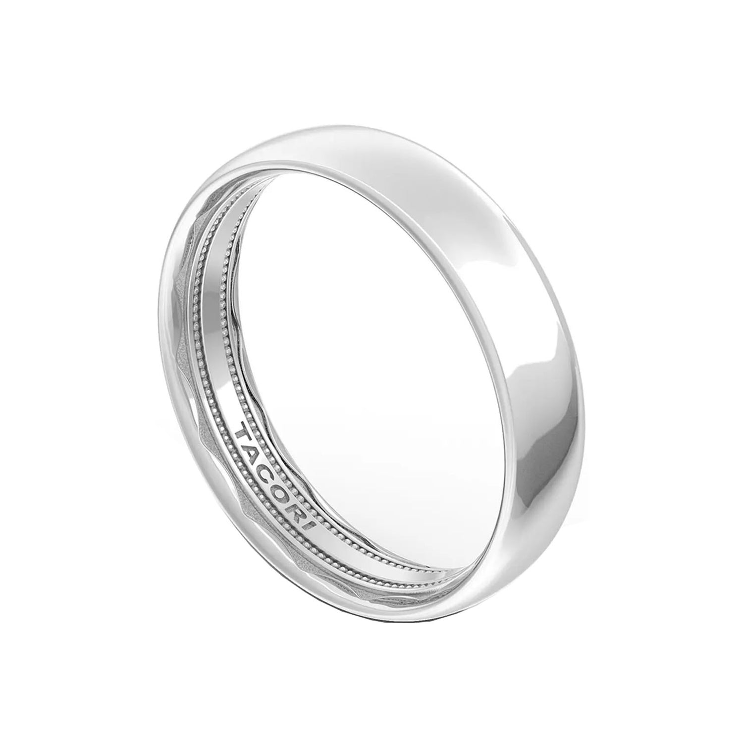 Make a powerful statement with this timeless Round Top High Polished Band. Crafted from 18k white gold with a classic 5mm round top design, this Tacori band adds a touch of refined elegance to any outfit. The interior boasts sculpted crescent details with a soft-comfort fit for all-day wearability. Capture forever in style.