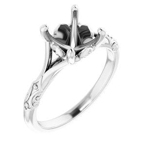 14K White 8 mm Round Solitaire Engagement Ring Mounting
