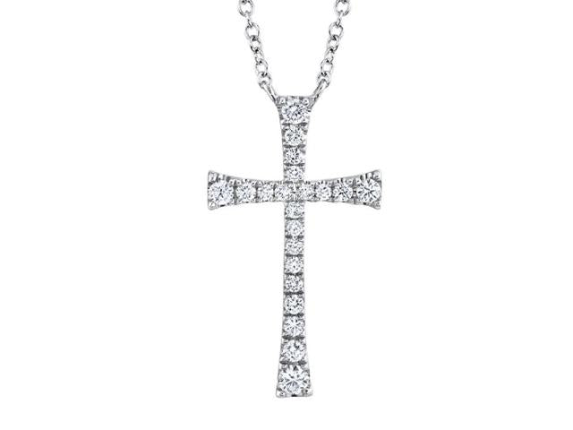 This exquisite cross necklace, from Shy Creation's Kate Collection, is crafted from 14k white gold and graced with round brilliant diamonds.