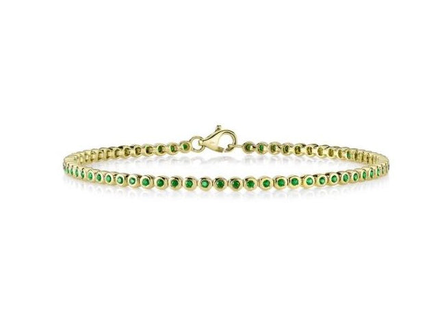 14KYG EMERALD BEZEL SET LINE BRACELET