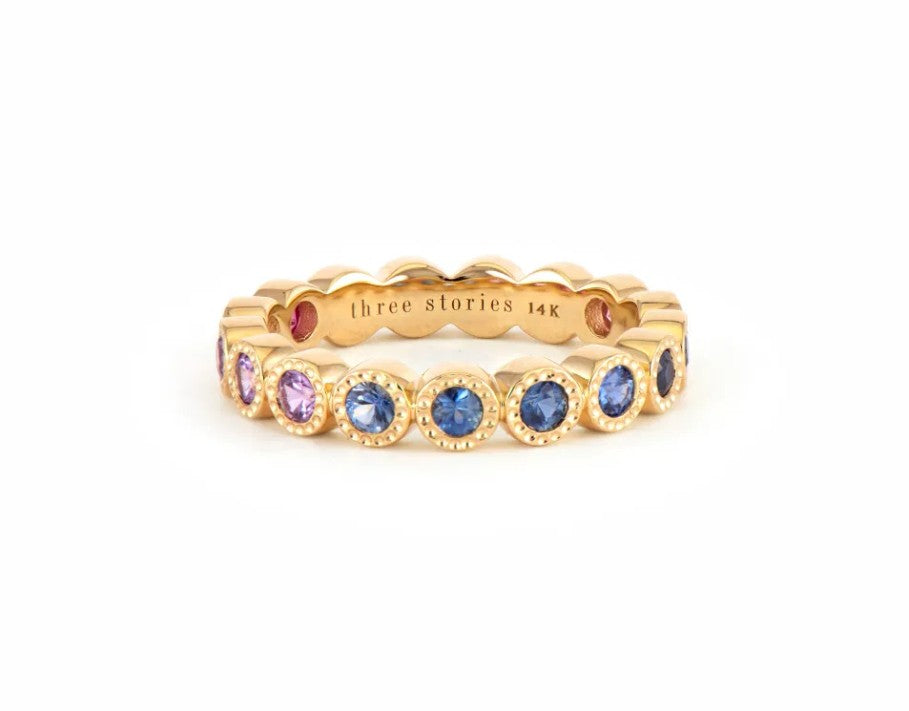14KYG OMBRE SAPPHIRE BEZEL SET BAND SIZE 7