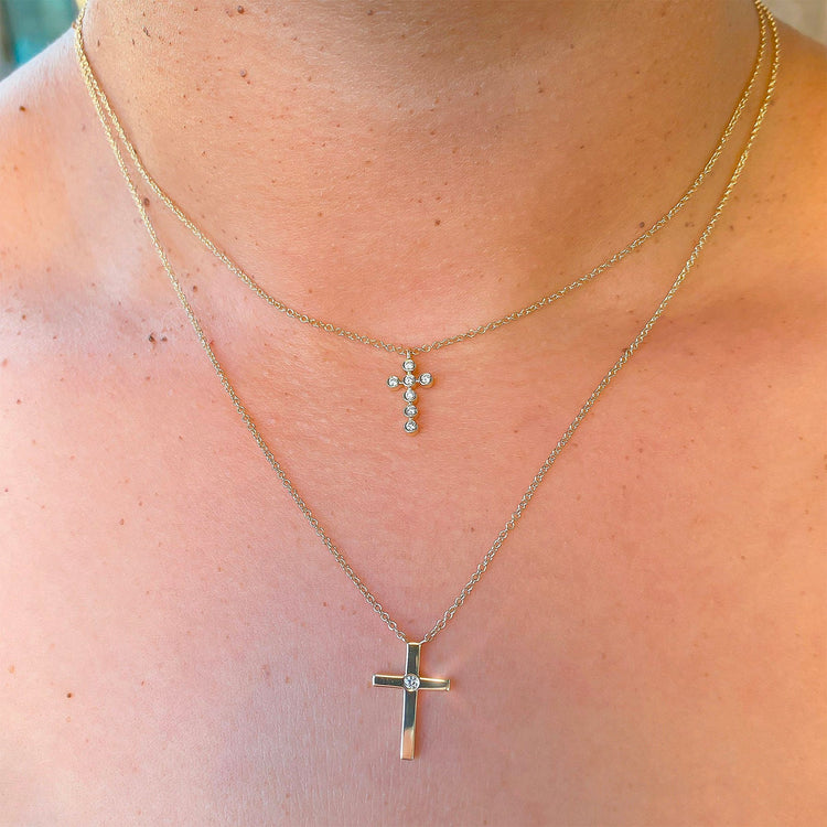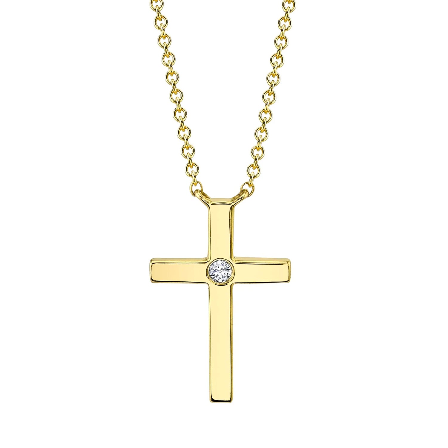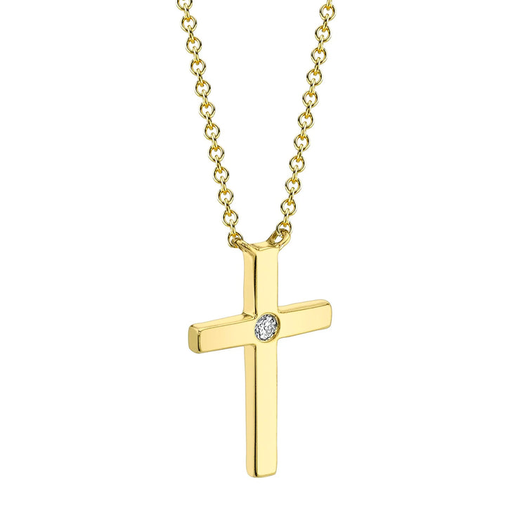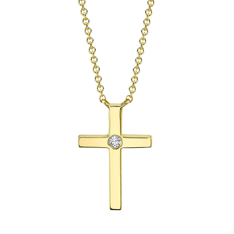 Faithfully express your devotion with this stunning Diamond Bezel Cross Necklace. Crafted from 14k yellow gold, it features a bezel-set sparkling diamond in a classic cross silhouette. Embrace your spiritual side with beautiful and meaningful jewelry that will last a lifetime.