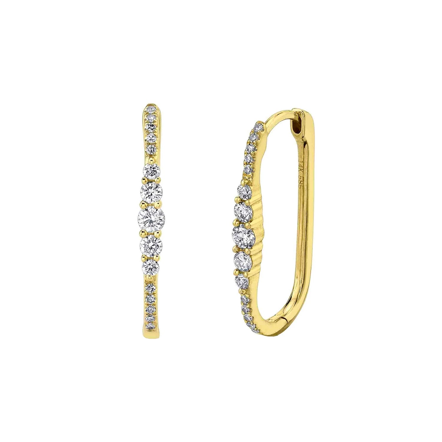 Add sparkle and sophistication to any look with these gorgeous Diamond Oval Hoop Earrings. Expertly crafted from 14k yellow gold and glittering with round brilliant diamonds, these earrings are sure to turn heads.