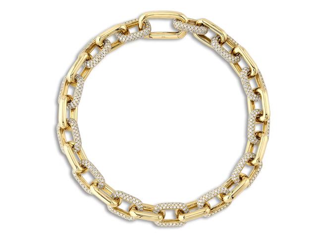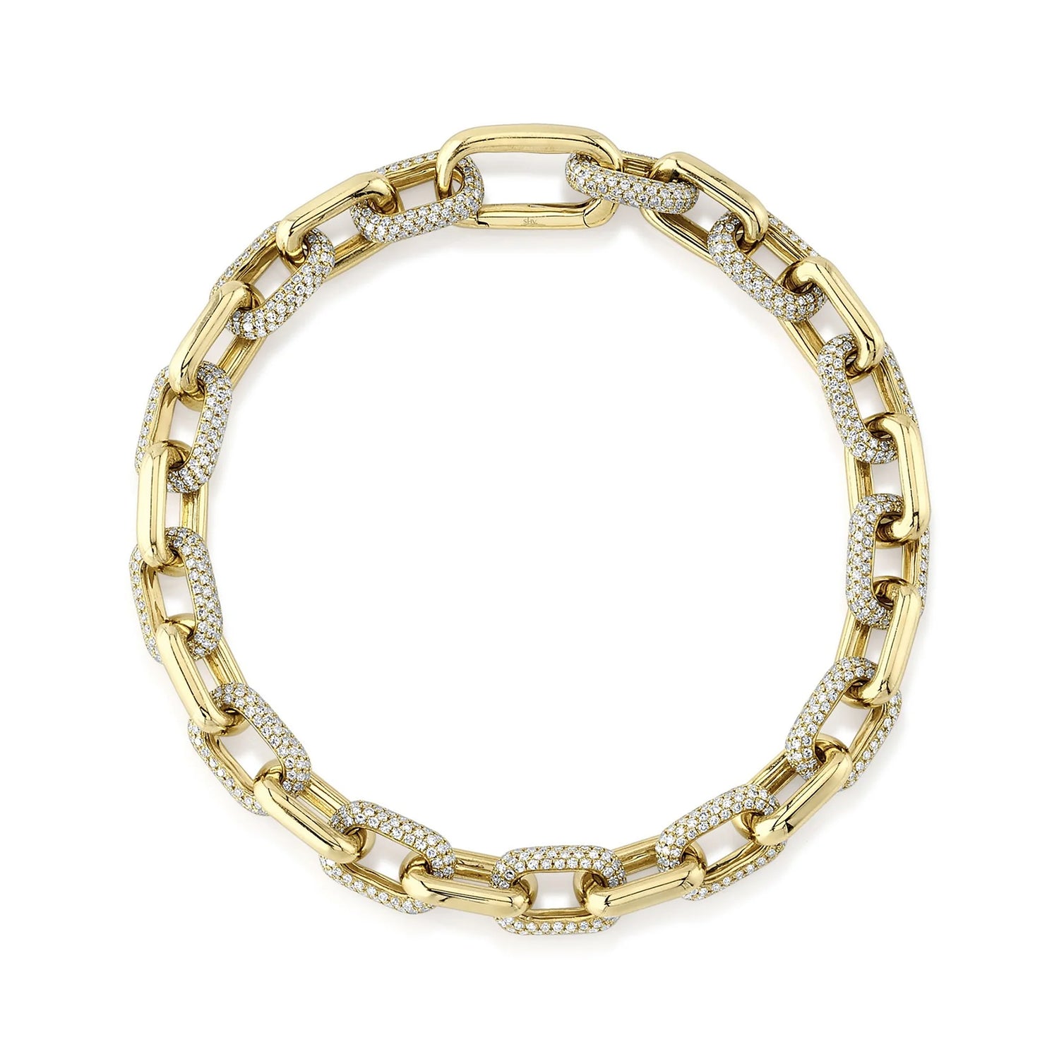 Upgrade your style with Shy Creation's Diamond Paper Clip Link Bracelet. Crafted from 14k yellow gold, this stunning bracelet features alternating links of polished gold and sparkling pavé diamonds. Perfect for stacking or wearing solo, it adds a touch of refinement to any outfit.