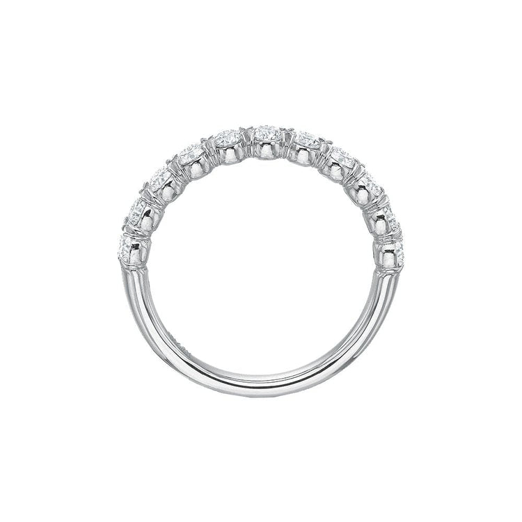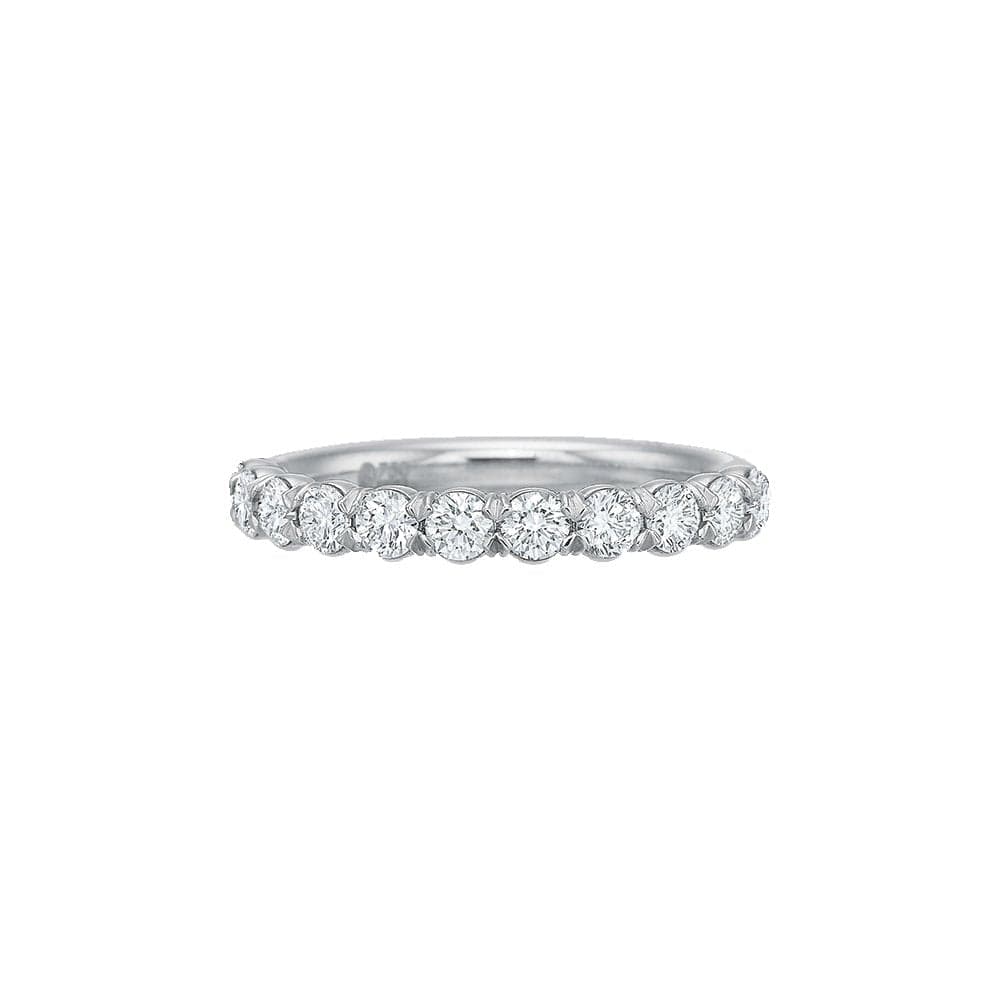 18k white gold 11=0.76ct h si1 br diamond flushfit band, shared v prong set