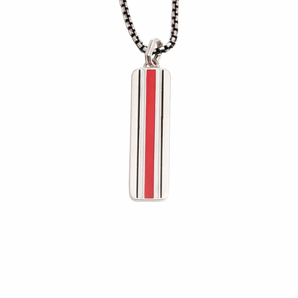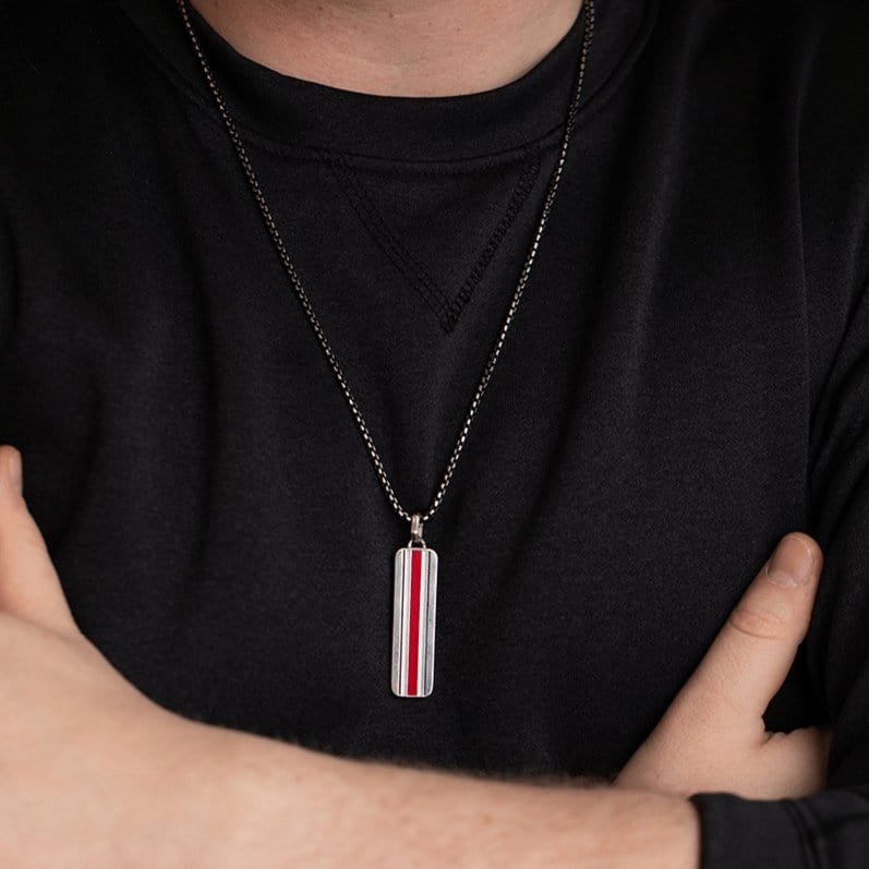 Show your support for The Ohio State Buckeyes by sporting this beautifully crafted, officially licensed OSU Helmet Bar Necklace. Made from sterling silver, this vertical bar necklace is carefully enameled to look like our boys' helmets - perfect for any Buckeye fan, alum, or parent.