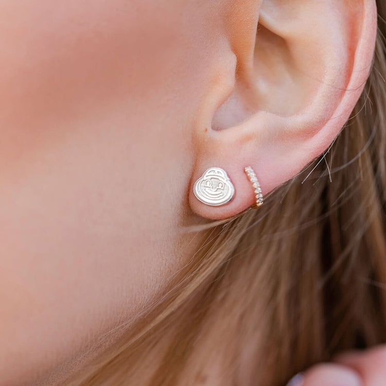 Show your support for The Ohio State Buckeyes by sporting these beautifully crafted officially licensed Brutus stud earrings. Made from sterling silver, these earrings are the perfect gift for any Buckeye fan, alum, or parent.