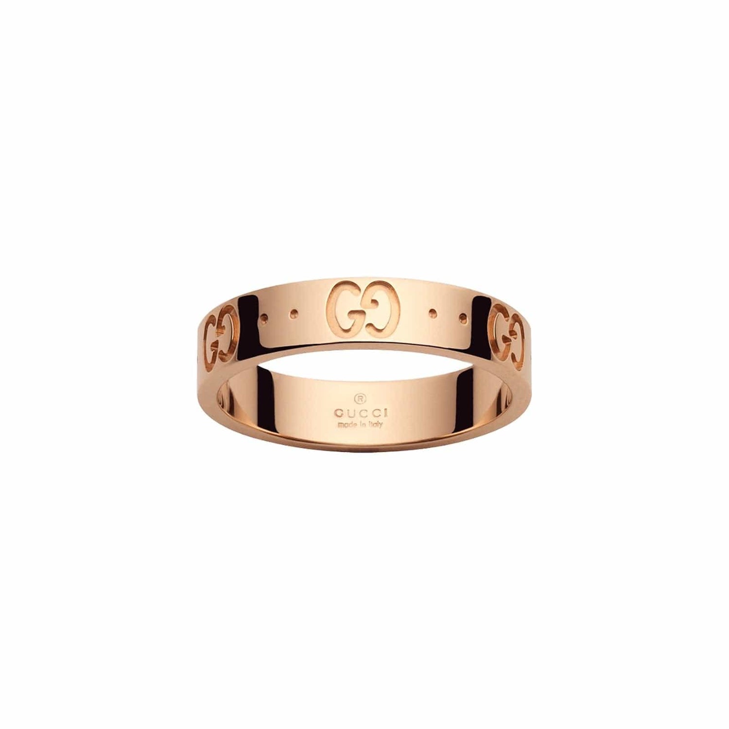 Crafted from 18k rose gold, this ring is animated by the House's monogram. The initials of the Founder of the brand, Guccio Gucci, appear as a motif along the accessory's narrow band.