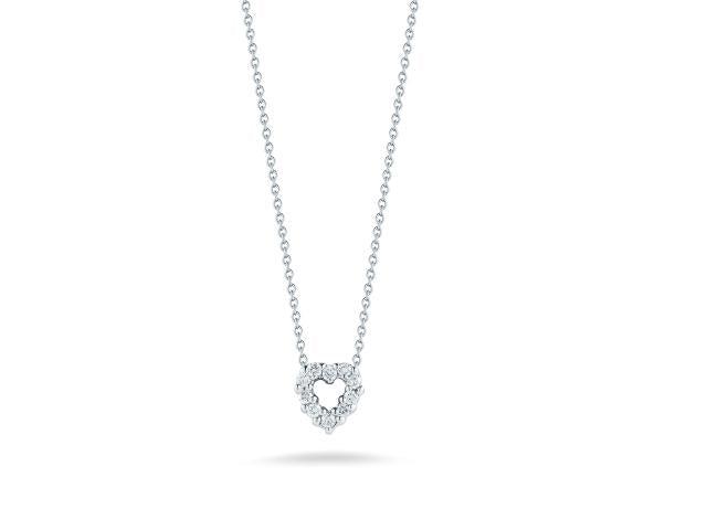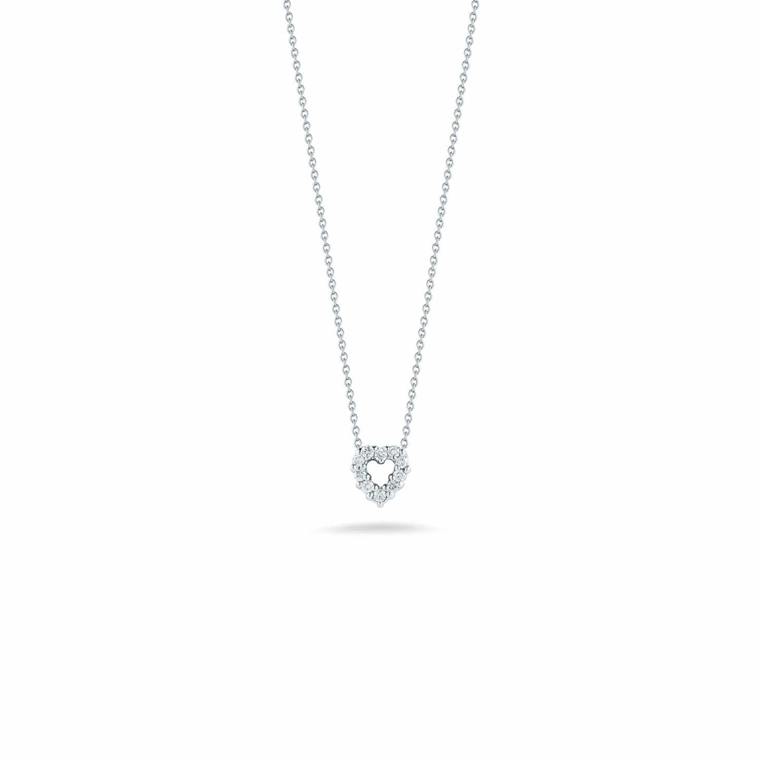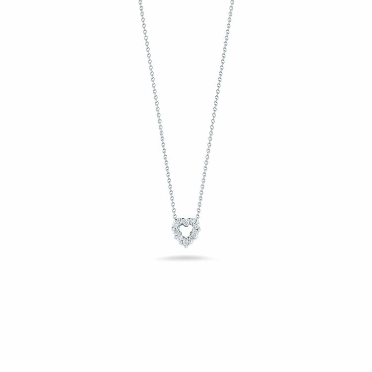 This cute Baby Heart necklace, from Roberto Coin's Tiny Treasures collection, is crafted from 18k white gold and features round brilliant diamonds in an open heart shape.
