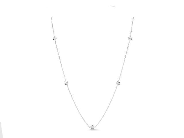 Add a touch of sophistication to your everyday look with this 5-Station Diamond Necklace from Roberto Coin's Diamonds by the Inch Collection. Crafted from 18k white gold, this timeless necklace features delicate chains and dazzling bezel set diamonds. Wear it alone or layer it with your favorite pieces for a stunning stack.