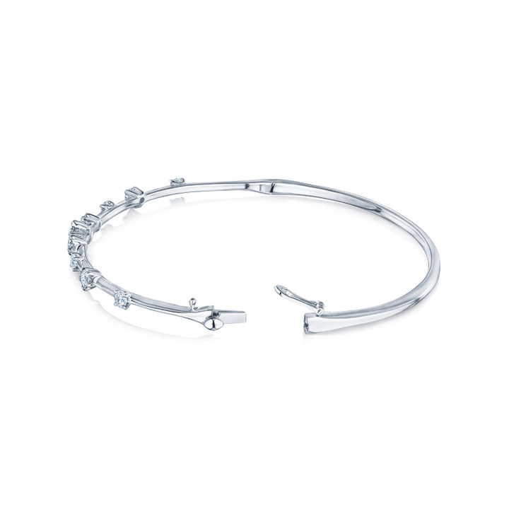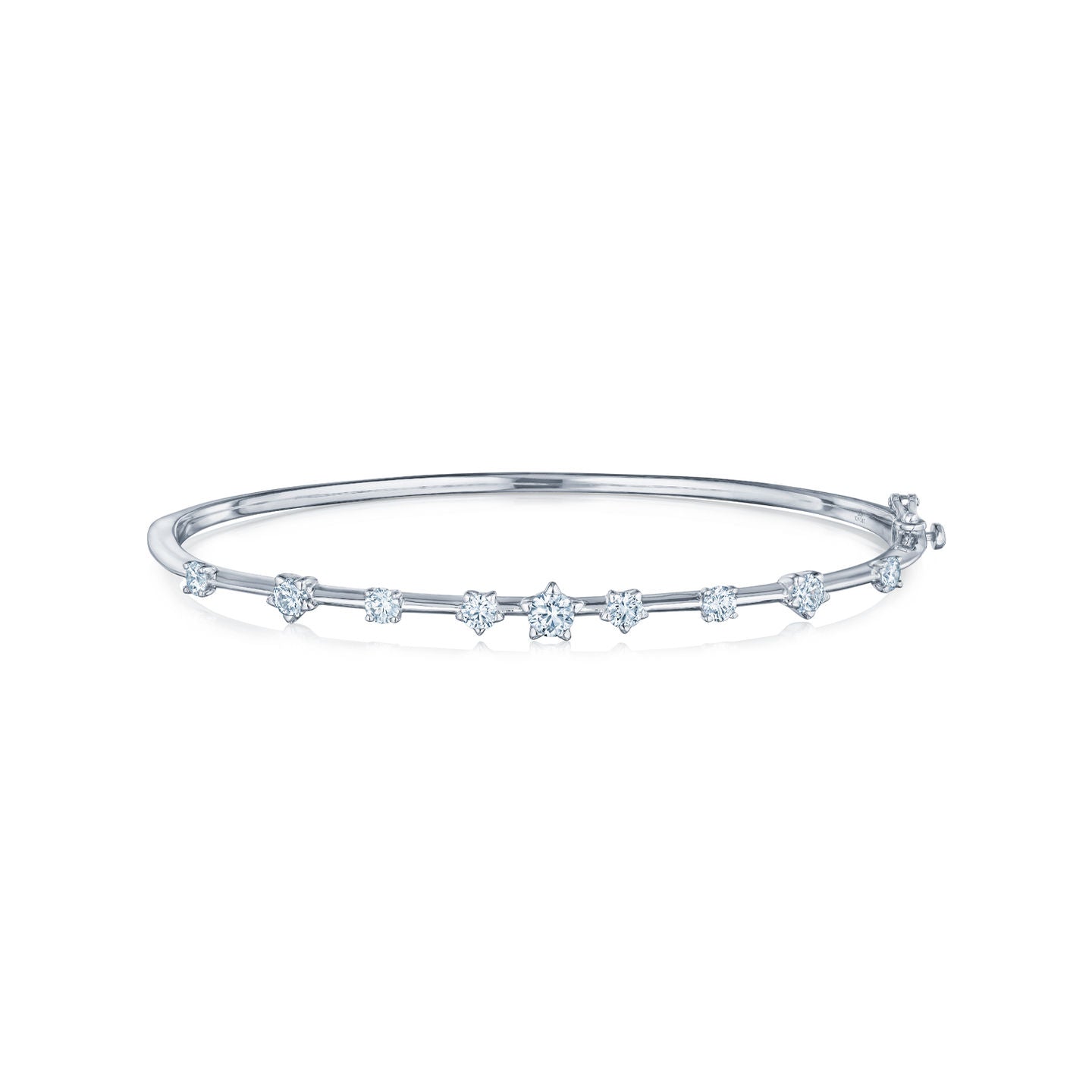 Diamonds orbit the wrist like a miniature twinkling galaxy. This timeless design dazzles with star-set diamonds, each cut to exacting Kwiat standards. Set along a strand of delicate 18k white gold, the stones seem to float effortlessly against the skin.