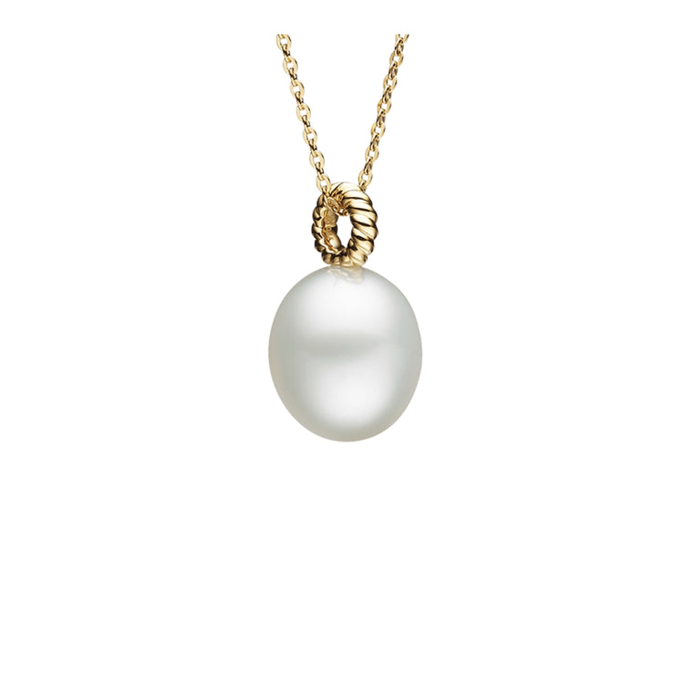 This timeless pearl pendant features a 13mm drop Paspaley pearl complemented by a nautical bale inspired by the ropes found on a Paspaley pearling ship.Paspaley Dive Rope Pendant featuring 1, 13mm drop Australian South Sea Pearl. Chain sold separately.