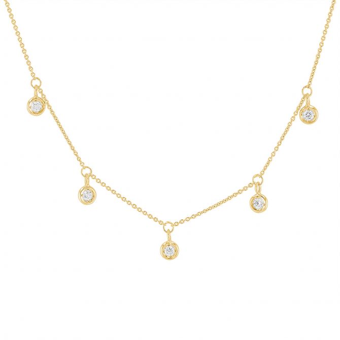 18k yellow gold 16-18" 5=0.23ct gh si br diamond drop station necklace with lobster clasp