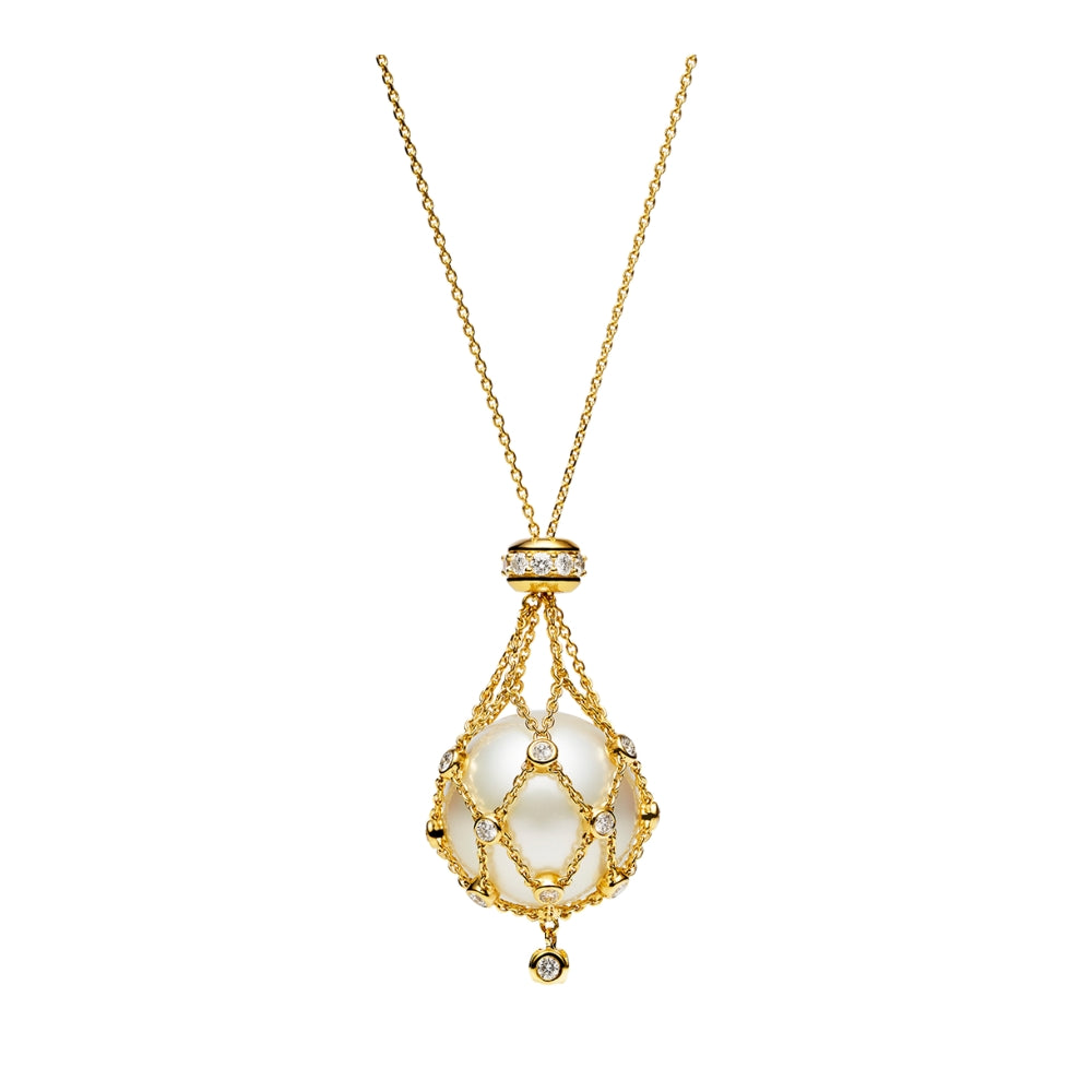 Paspaley Lavalier necklace featuring a loose 15mm Paspaley Australian South Sea Pearl with 43 white diamonds (1.10ct) in yellow gold. Length is adjustable from 40 to 73cm (~16-30 IN).