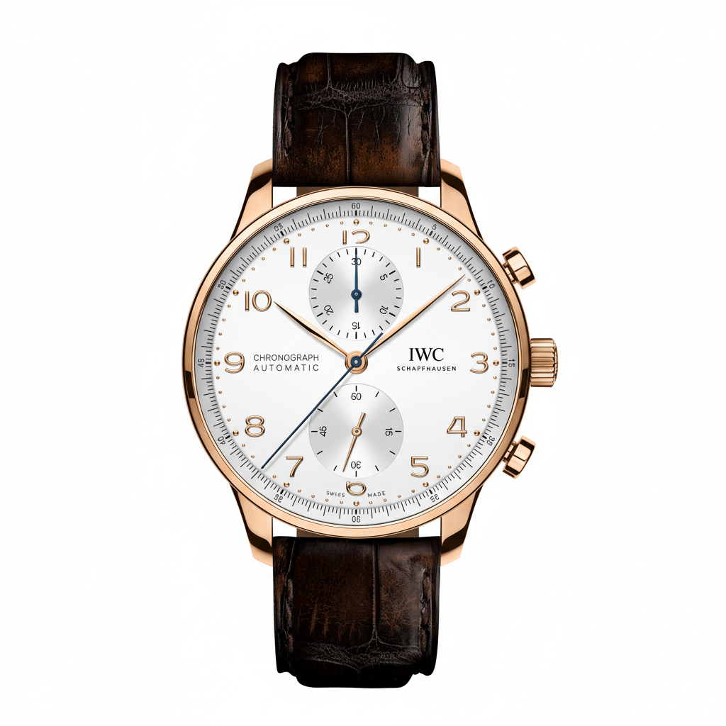 The harmoniously designed chronograph with its peripheral precision scale and recessed totalizers has been the most coveted member of the Portugieser family since 1998.