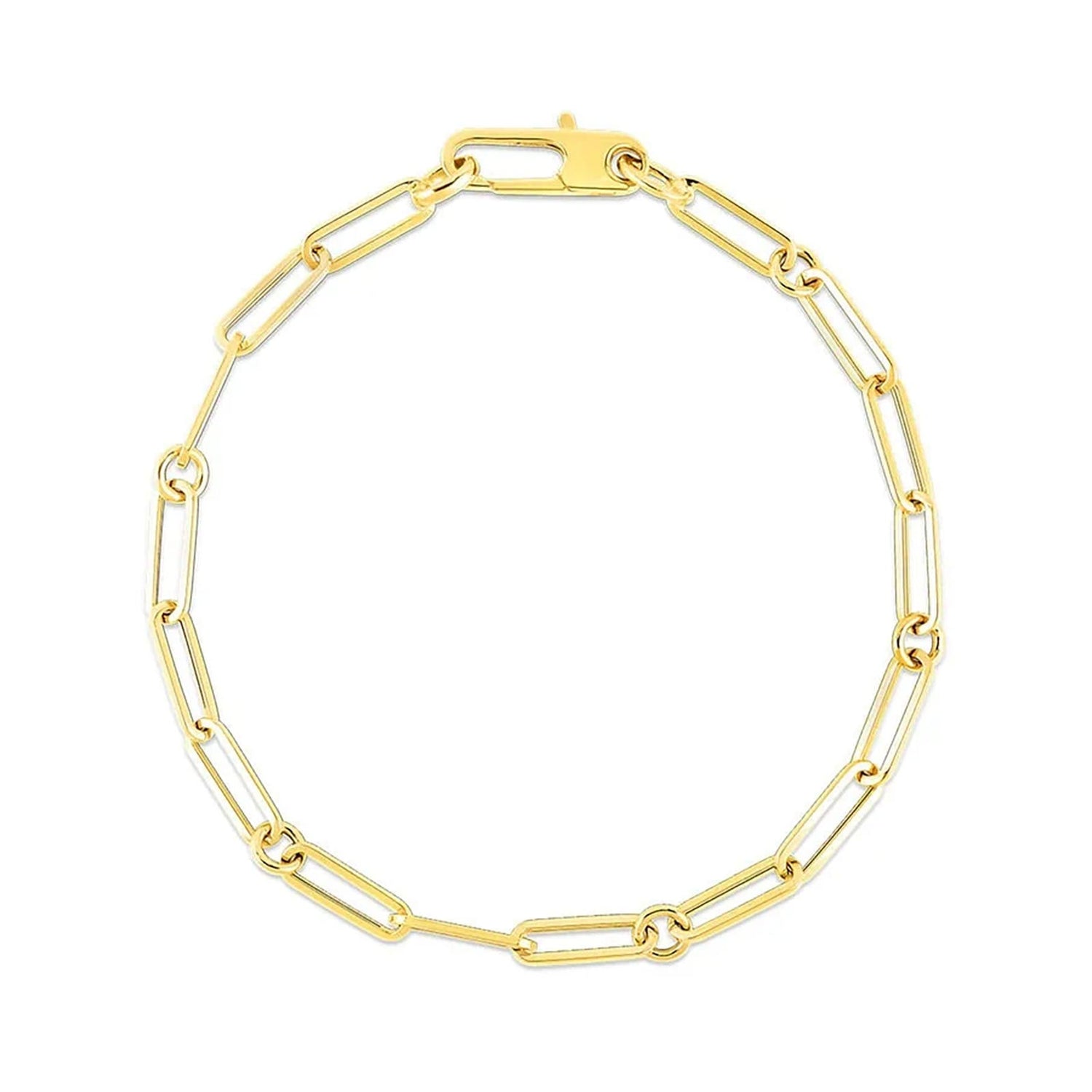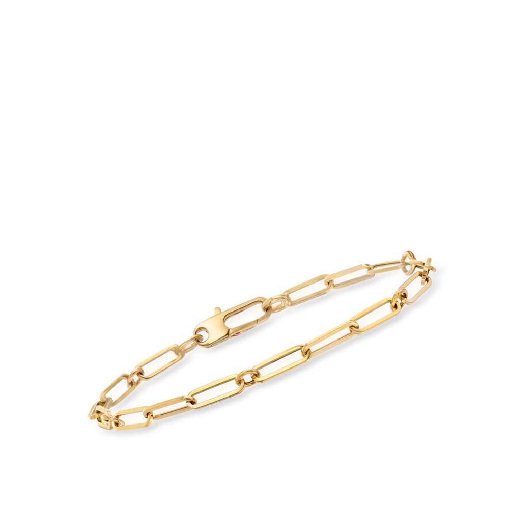 Beautifully crafted in 18k yellow gold, this Fine Link Paperclip Chain Bracelet, from Roberto Coin's Designer Gold Collection, adds just the right hint of chic to any ensemble.