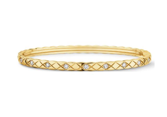Quilted motif, mini version, 18K yellow gold, diamonds