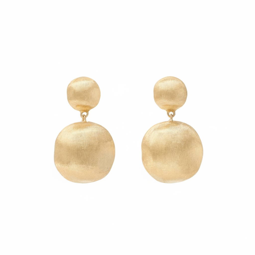 18KYG AFRICA SATIN HAND ENGRAVED DANGLE EARRING