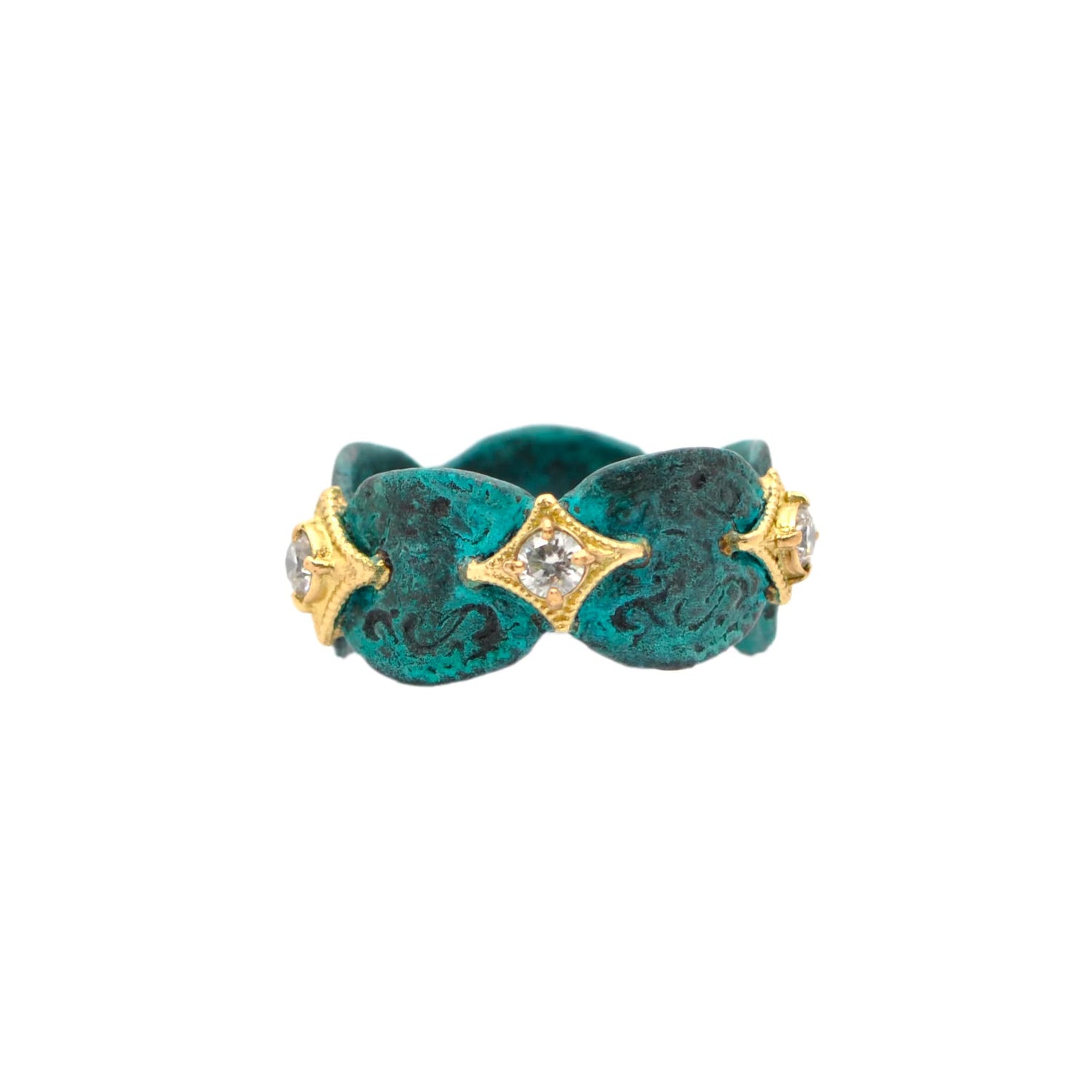18k yellow gold teal patina diamond artifact coin ring size 7