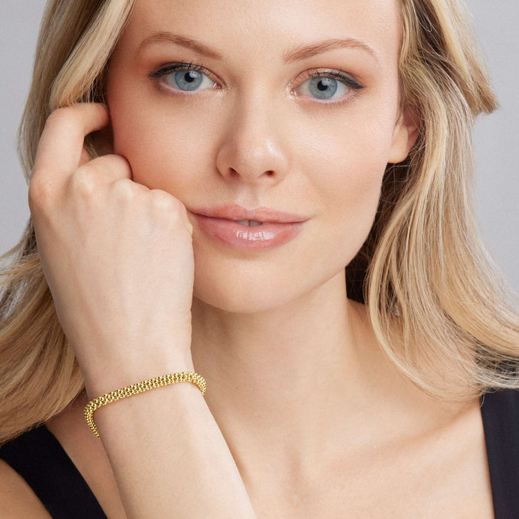 An 18K gold Caviar signature bracelet finished with a signature lobster clasp detailing the LAGOS crest. Size Medium