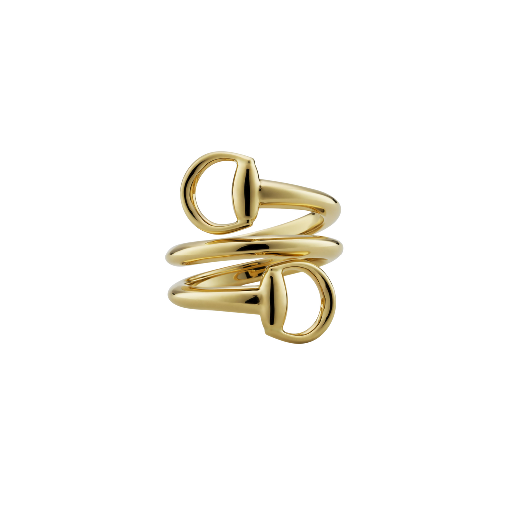 The Gucci Horsebit ring in 750 yellow gold exudes luxury and sophistication. With a 23mm width and weighing 11.3g, it features the iconic horsebit motif, making it a bold statement piece. A timeless addition from the Fall/Winter S.53 collection, showcasing refined elegance.