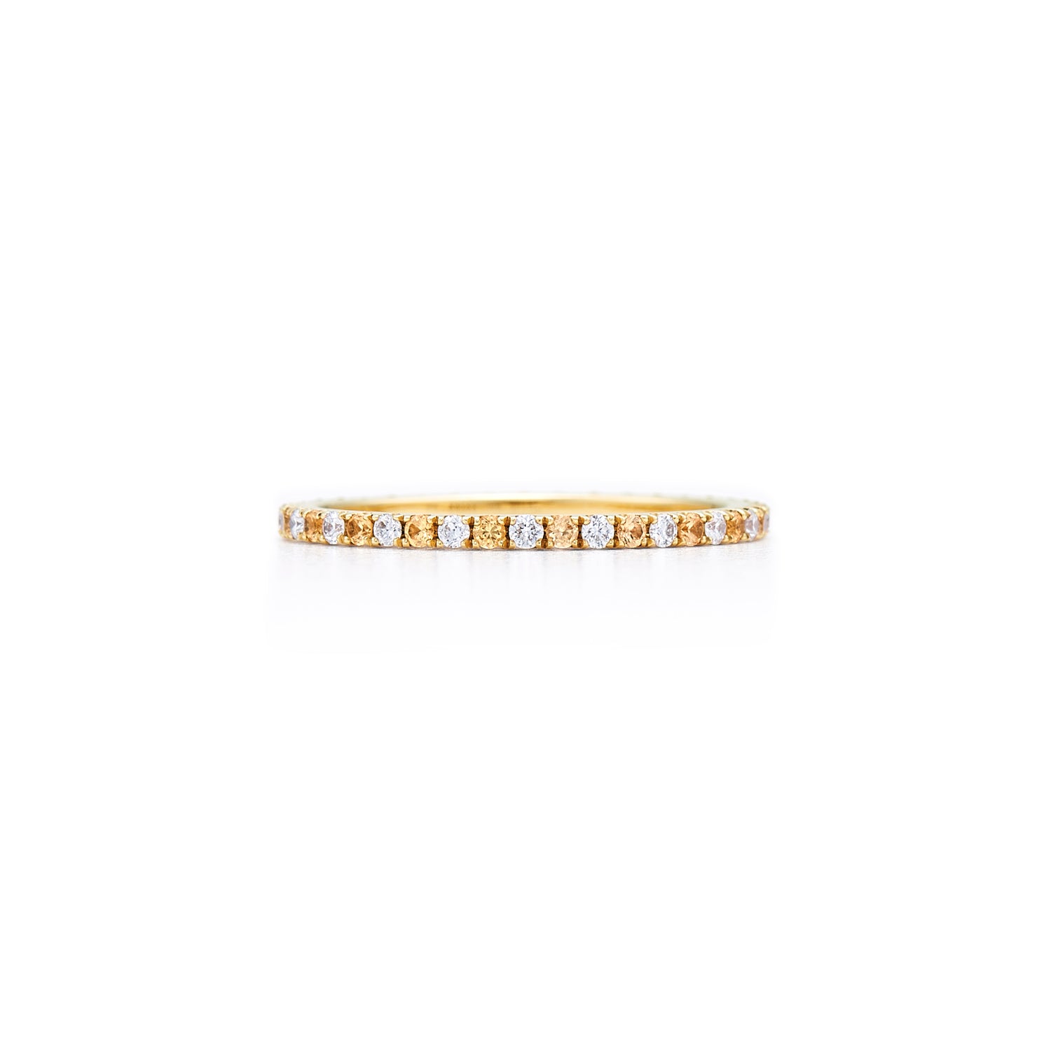 This slim, sparkling band makes a subtle statement on its own or adds a touch of color to your ring stack. Alternating diamonds and yellow sapphires are meticulously set in 18K yellow gold for a look that’s at once modern and timeless. Kwiat artisans carefully craft this 1.65mm wide ring to be comfortable and durable for everyday wear while maintaining a light, delicate effect.