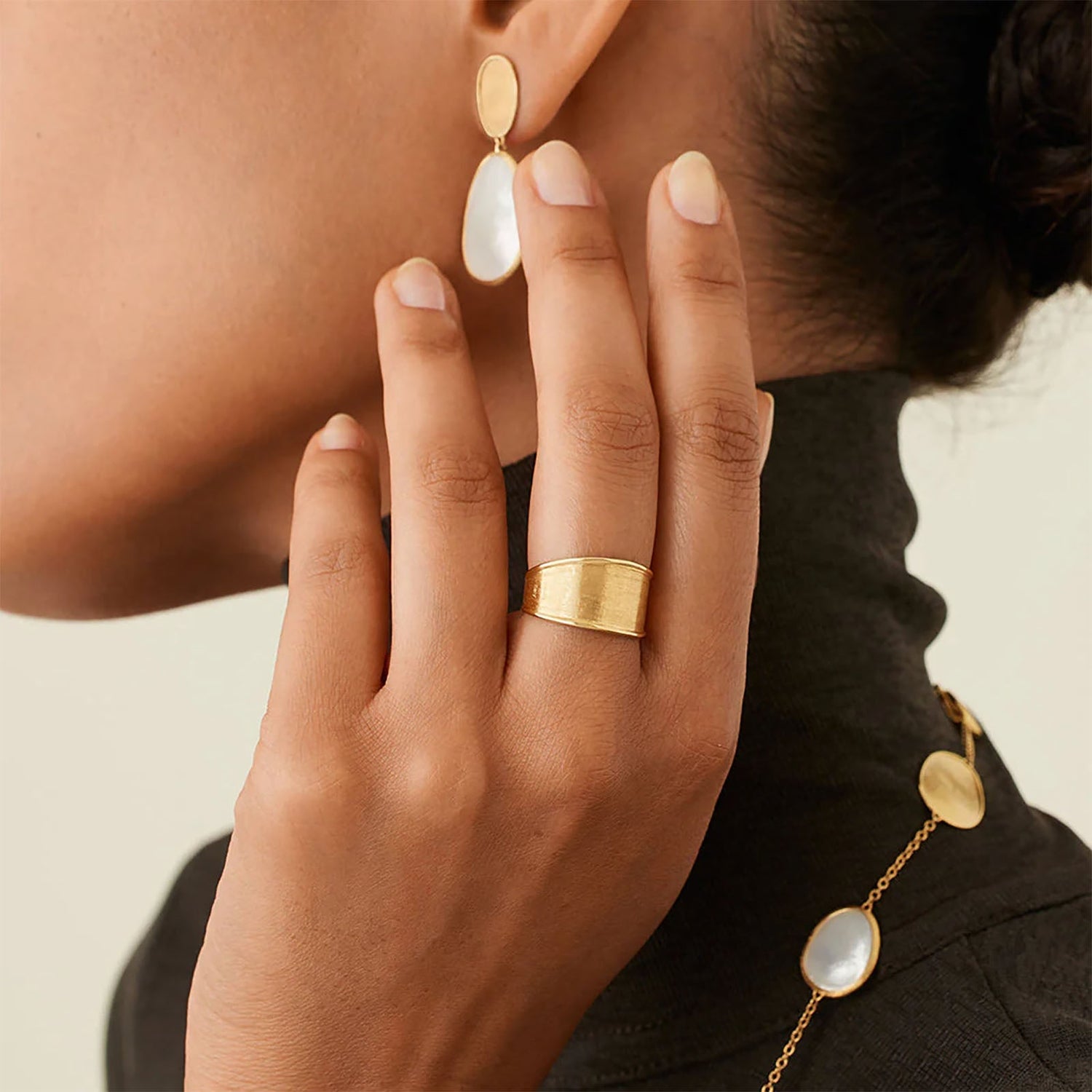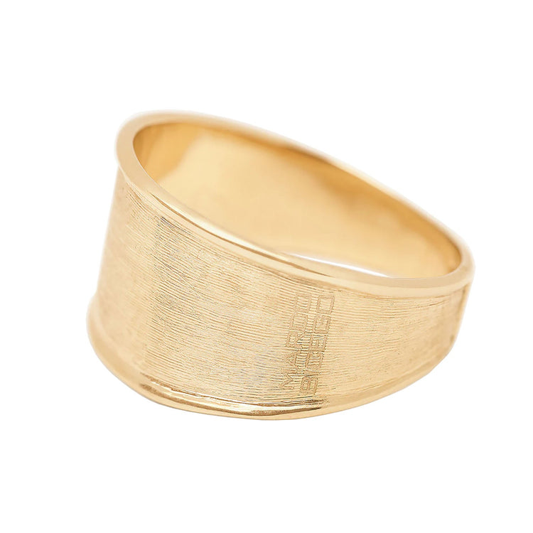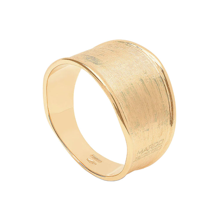 The 18k yellow gold small band ring, with its irregular surface and linear design, has been finely hand-engraved using an ancient Florentine technique, granting it extraordinary luster and a silky surface. A unique fit for an elegant and timeless piece of jewelry.