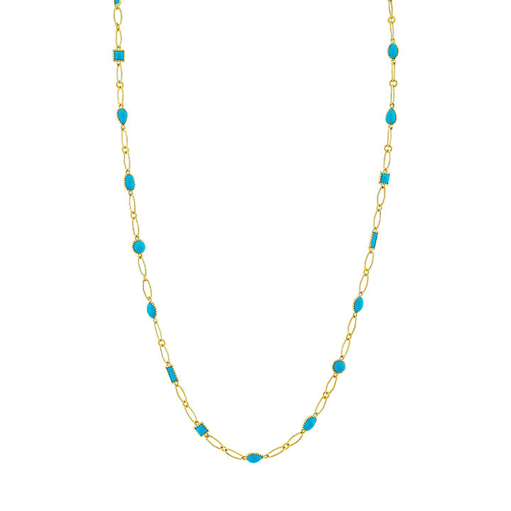 18k Yellow Gold Turquoise Mixed Shape Lacey Chain