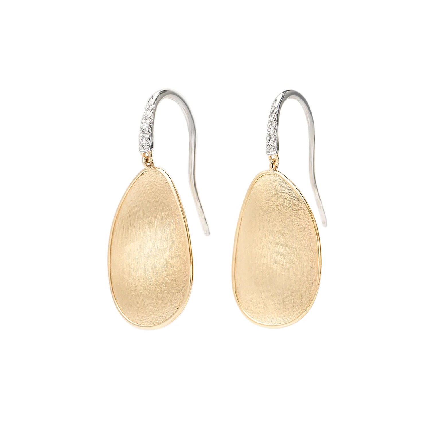 Embellished by a delicate diamond pavé hook, this irregularly shaped pendant earring is perfect for any occasion. The 18k yellow gold leaves are finely hand-engraved using an ancient Florentine technique.