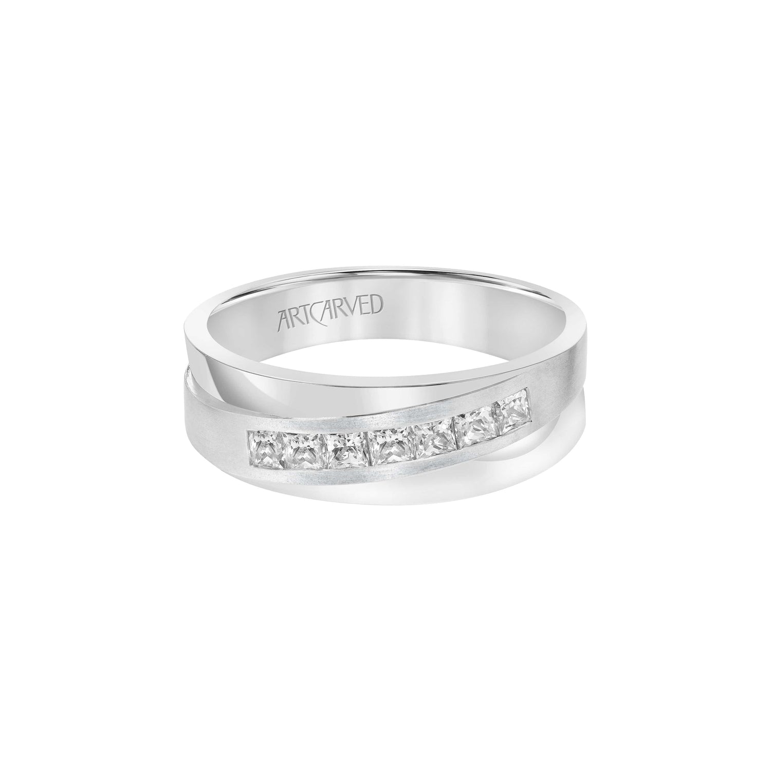 Crafted from 14k white gold and set with seven princess cut diamonds, this Artcarved band is a modern twist on a classic look.