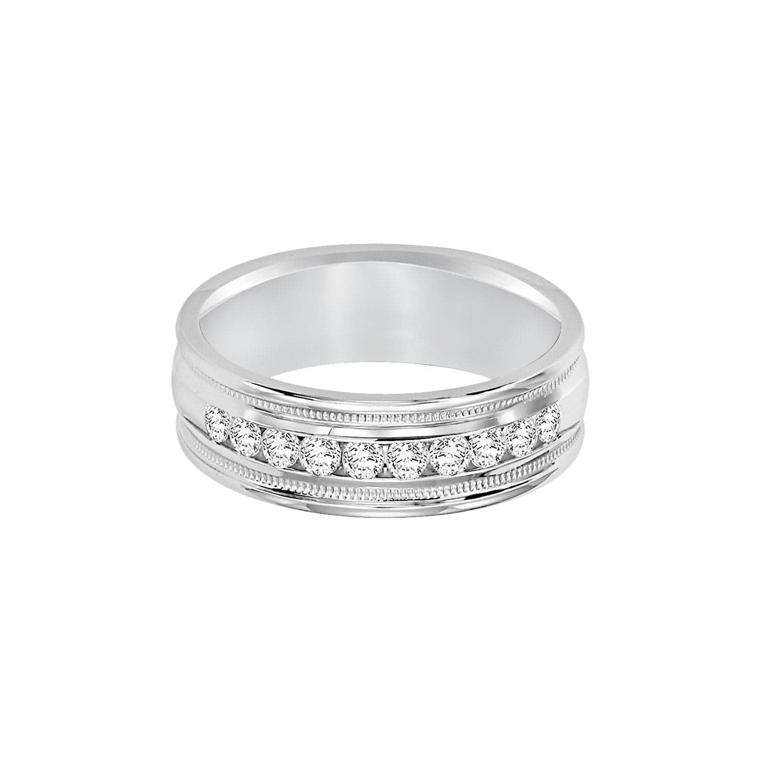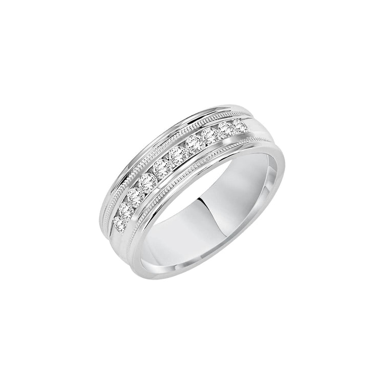 Traditional milgrain paired with a modern, bright finish, round edges and ten round brilliant diamonds are the perfect combination for this exquisite, Comfort Fit, band