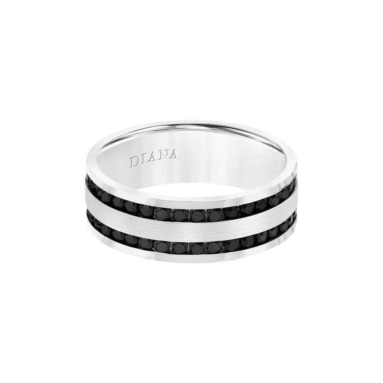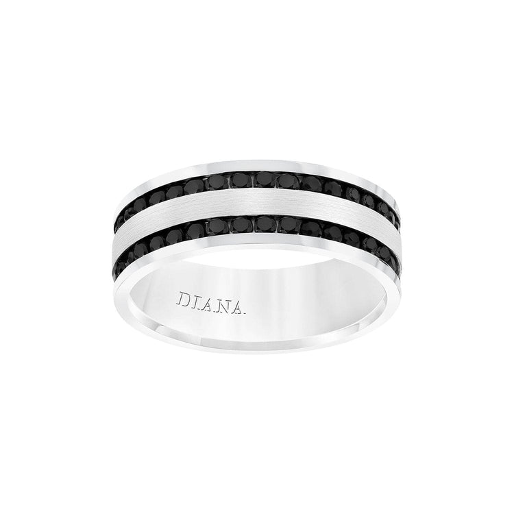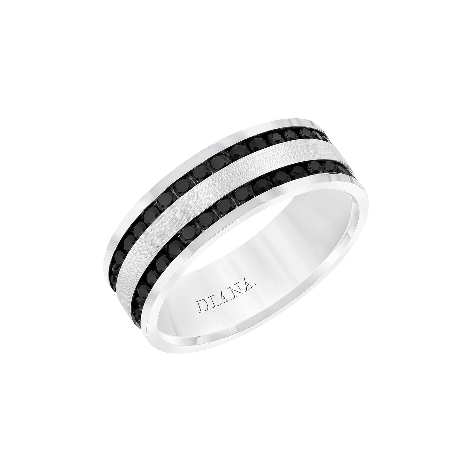 Crafted from 14k white gold and set with two rows of black sapphire rounds, this Diana Goldman band is a bold twist on a classic style.