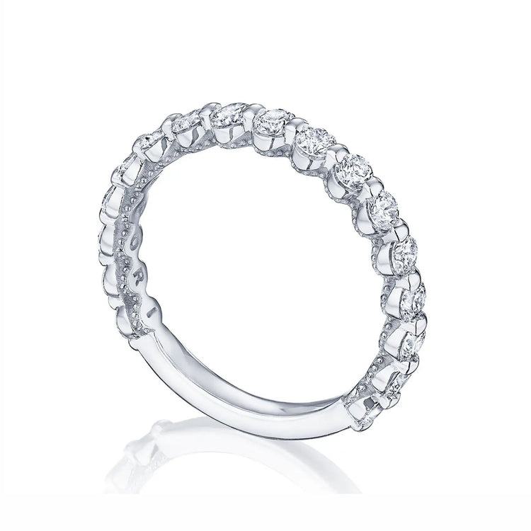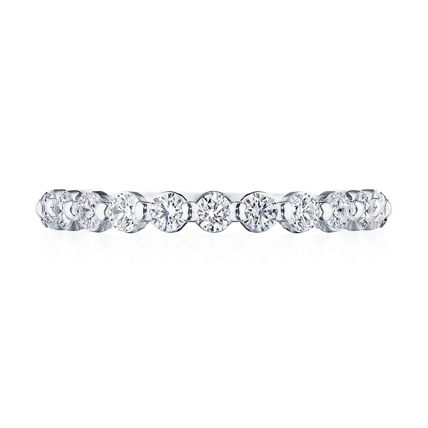 Round-brilliant diamonds set with two prongs creates a diamond-forward string of sparkling droplets. A band of Sculpted Crescent fabric adds to the modern look.