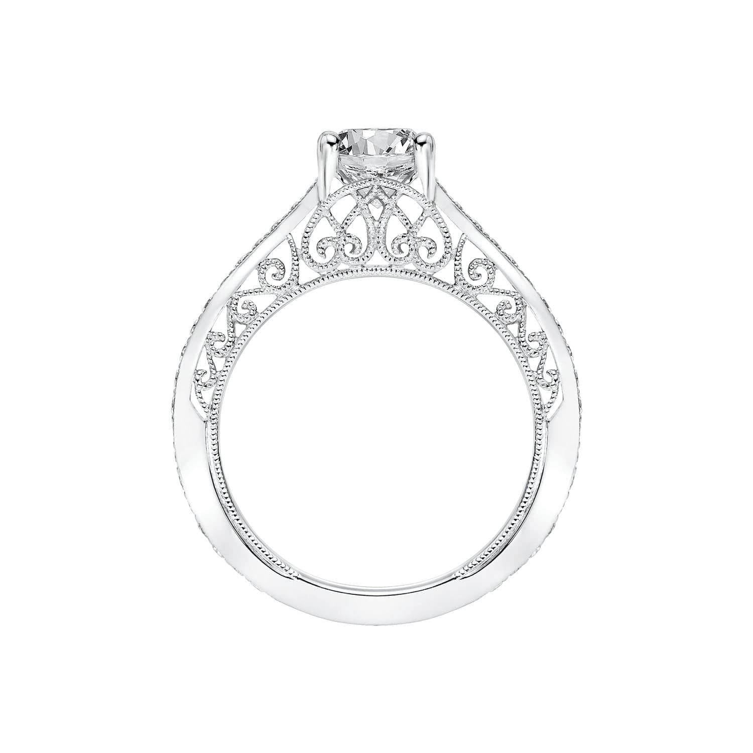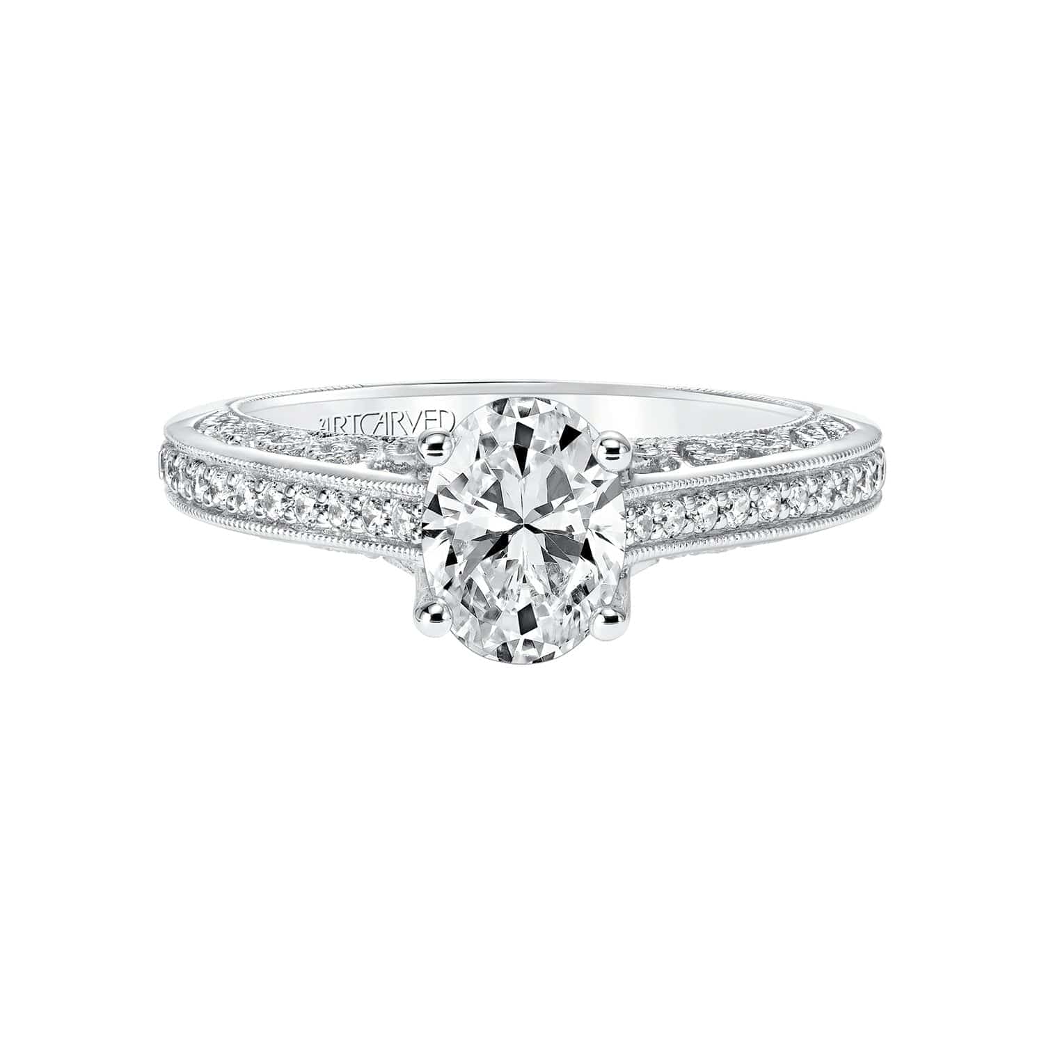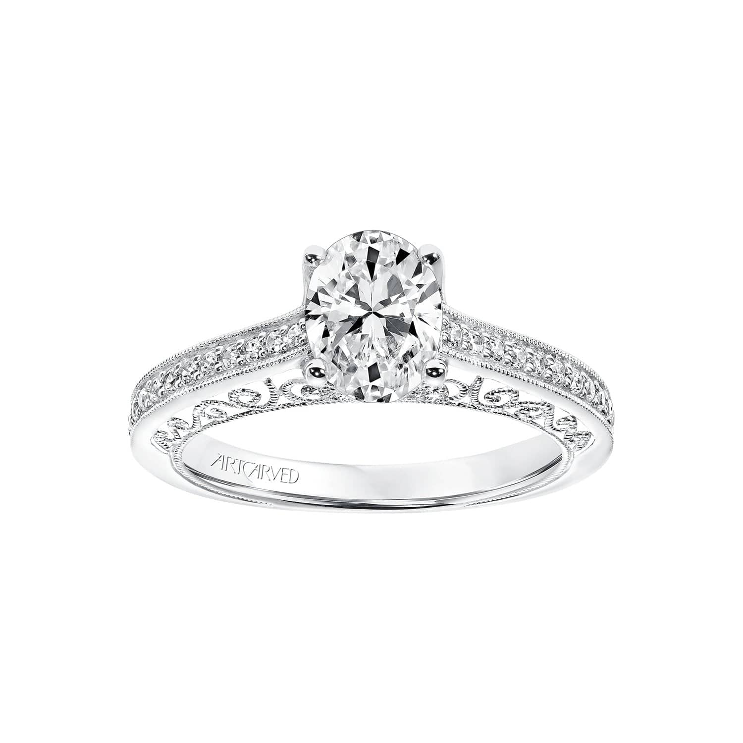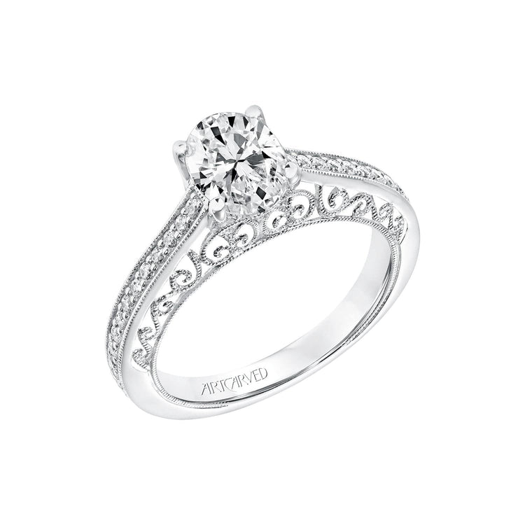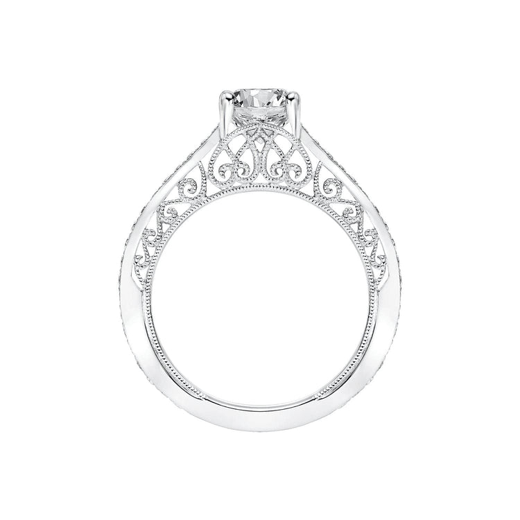 Artcarved's Ramona Semi Mount Ring has a vintage look with it's diamond shank, scrollwork filigree and hand milgrain detail.