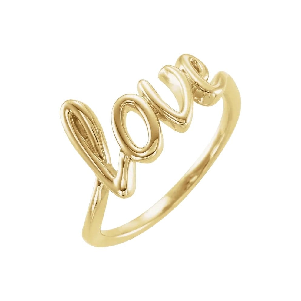 This beautifully designed Script Love ring is crafted from 14k yellow gold.