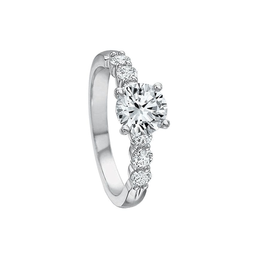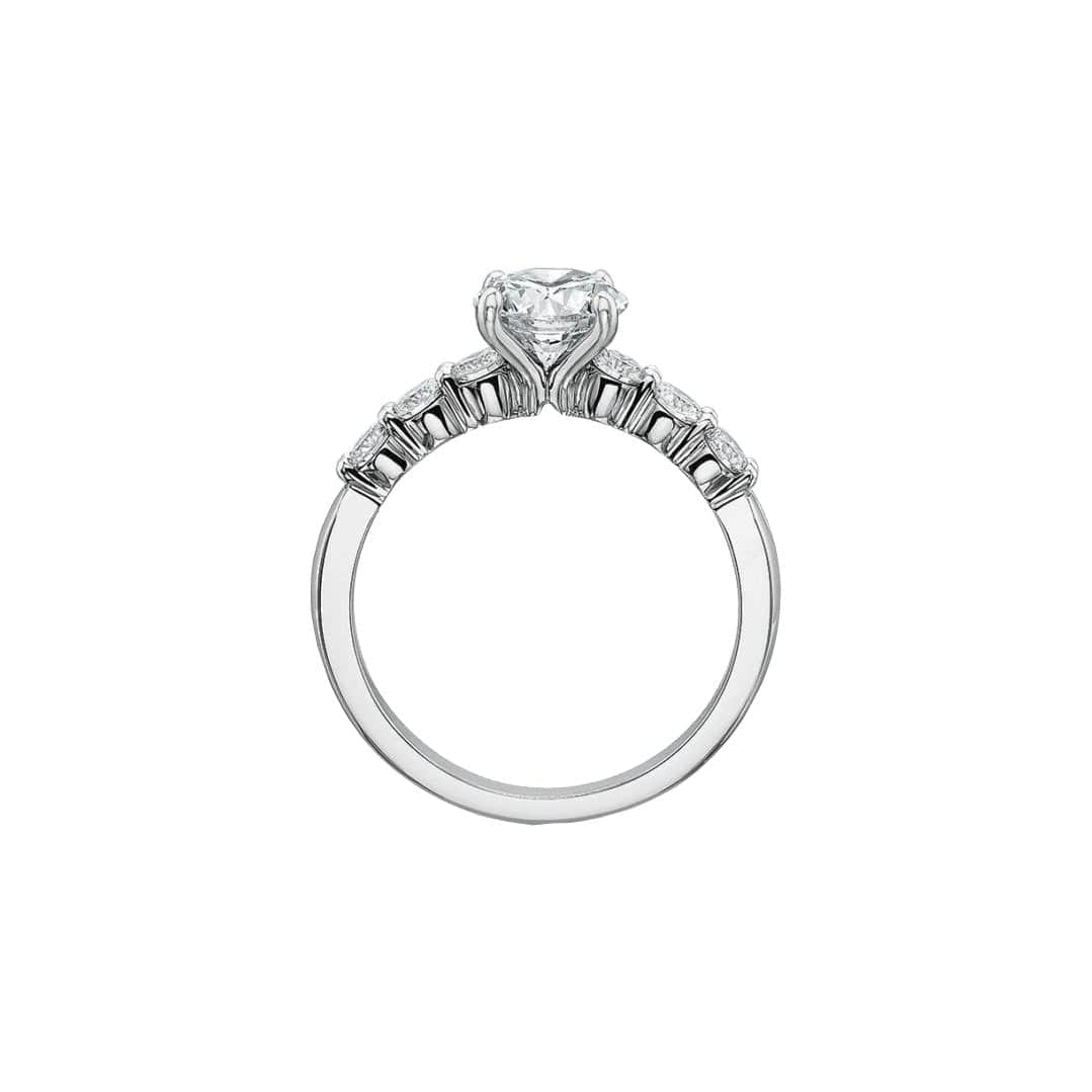 Precision Set's Classic Semi Mount Ring is crafted from 18k white gold with a platinum head and set with round brilliant diamonds.