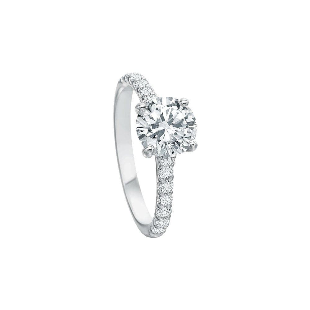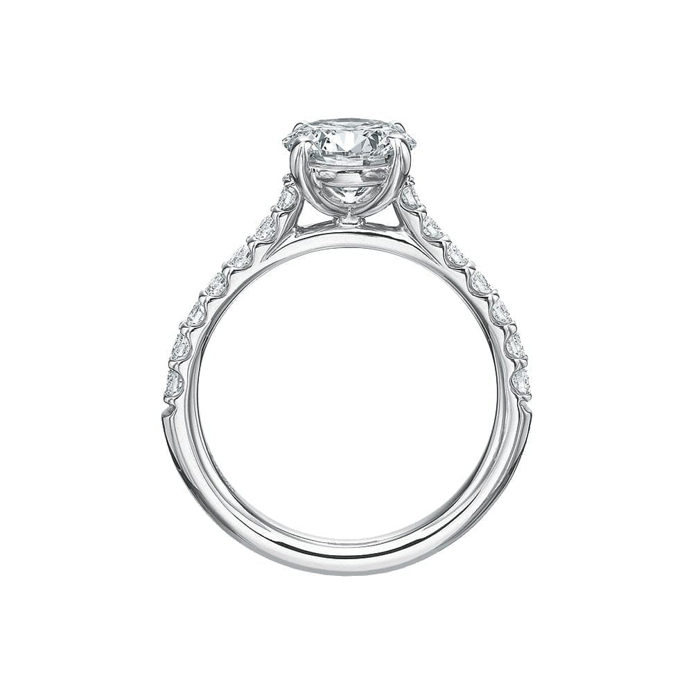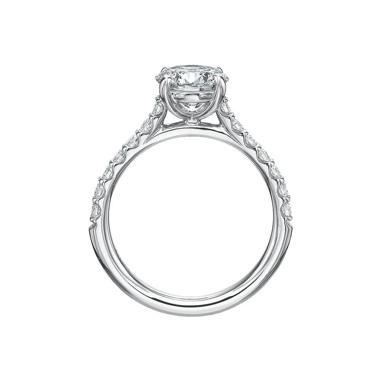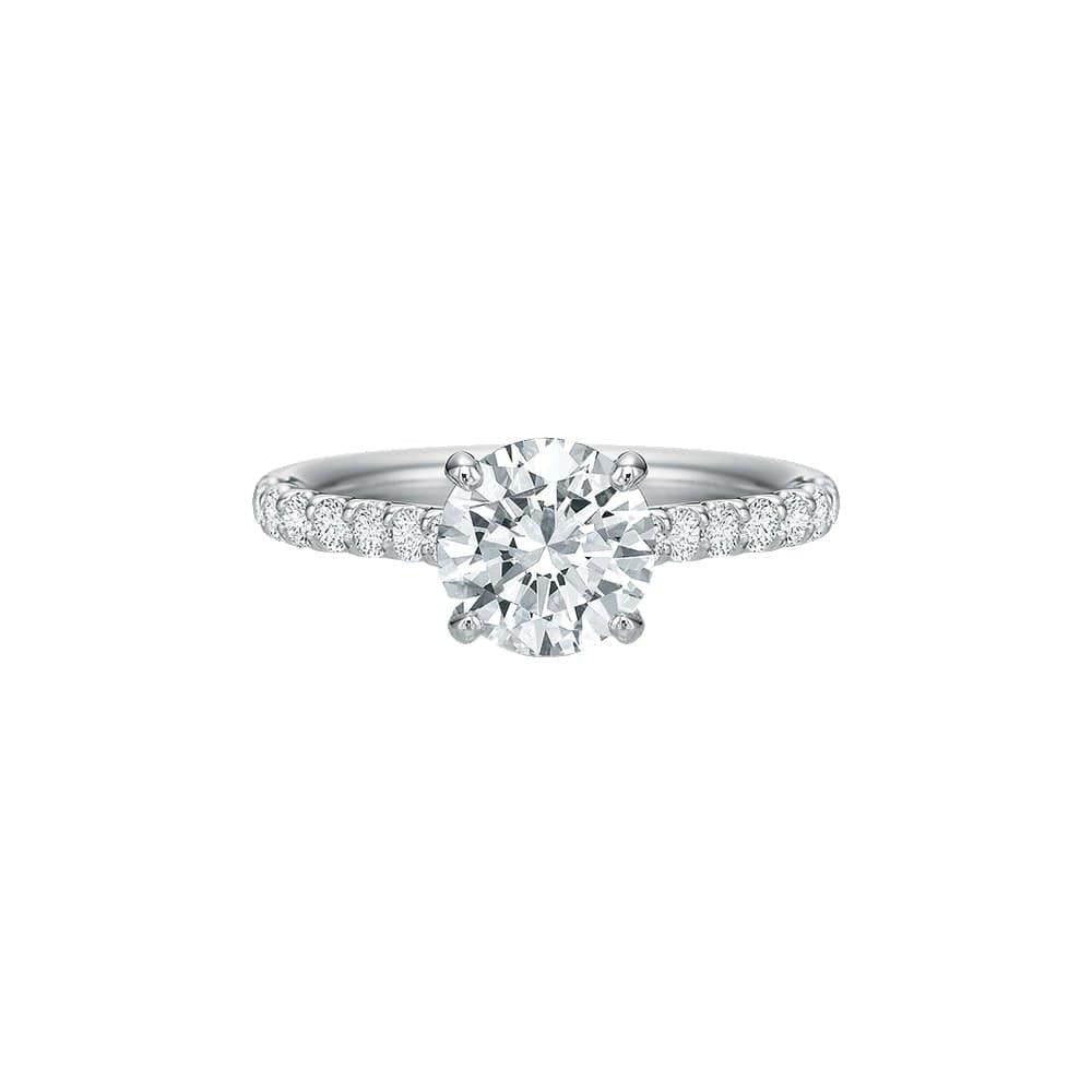 Precision Set's Classic Semi Mount Ring is crafted from 18k white gold with a platinum head and set with round brilliant diamonds.