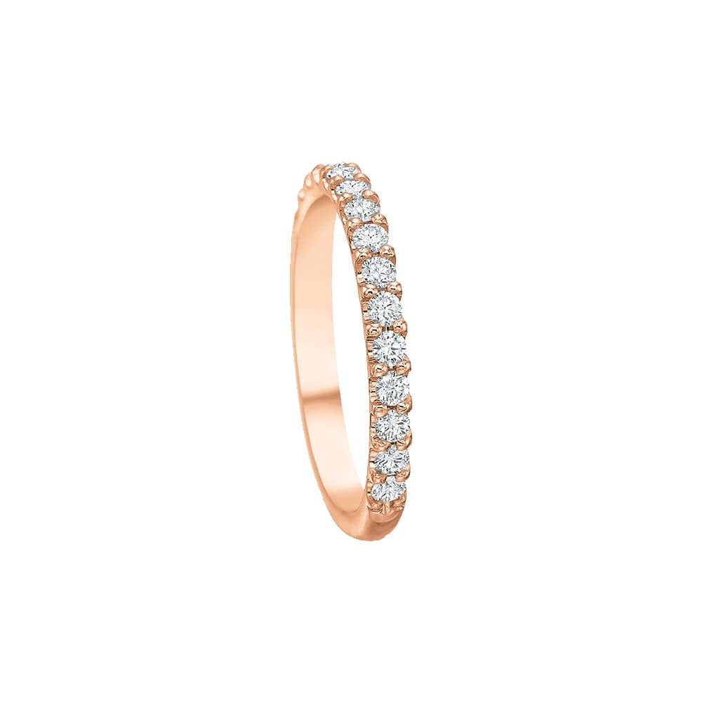 18k rose gold 15=0.38ct h si1 br diamond comfort fit band, shared prong set