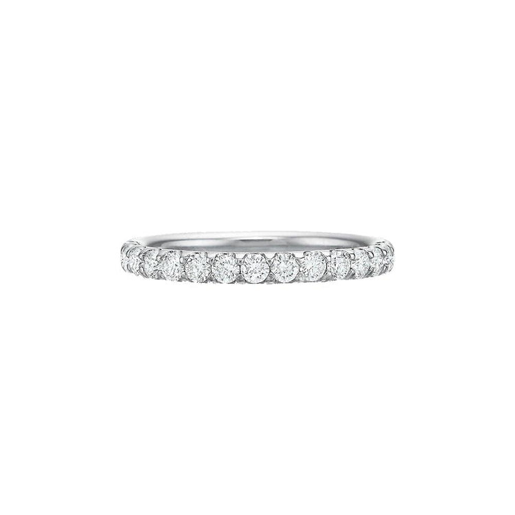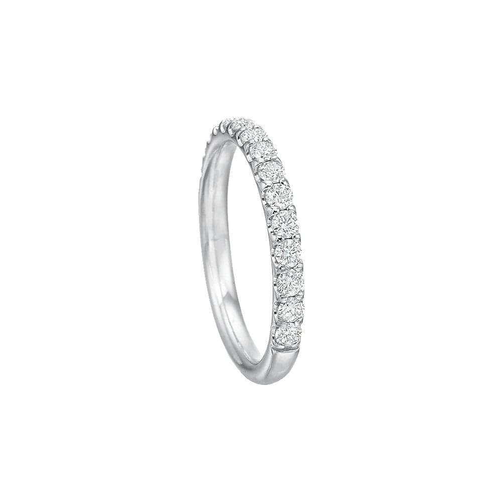 18k white gold 15=0.50ct h si1 br diamond comfort fit band, shared prong set