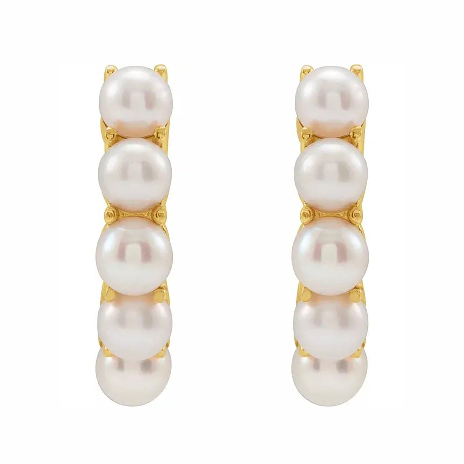 Discover graceful beauty with these Cultured Freshwater Pearl Huggies. Crafted from 14k yellow gold, these cultured pearl earrings are perfect for solo wear or to layer with your favorite earring combinations. An ideal piece for gifting and a timeless addition to your jewelry collection. Fashionable and trendy, these earrings will make you shine in all the right ways.