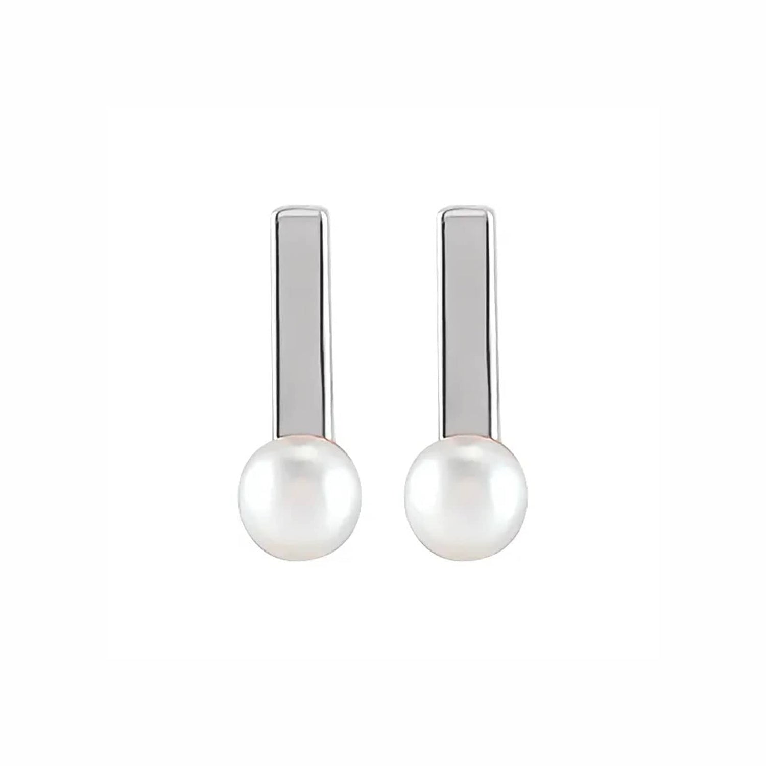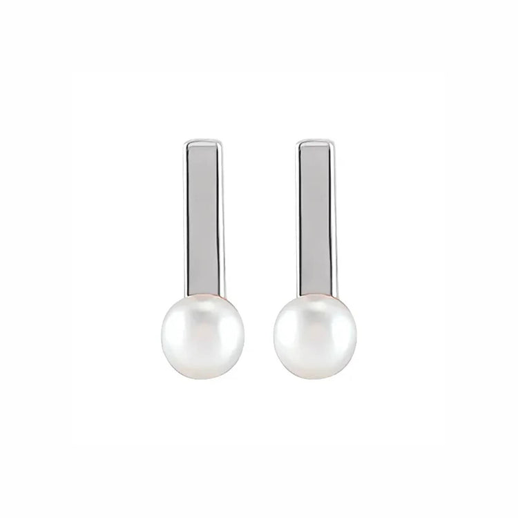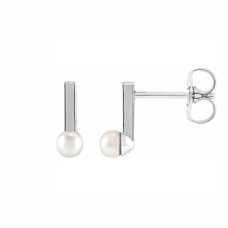 Delicate and timeless, these Cultured Seed Pearl Bar Earrings are crafted from polished 14k white gold, each earring is embellished with two 3mm cultured seed pearls. The slender bar-shaped design of these earrings exudes refinement, complimenting any evening ensemble. Securely fastened with friction backings, these earrings are perfect for any occasion.