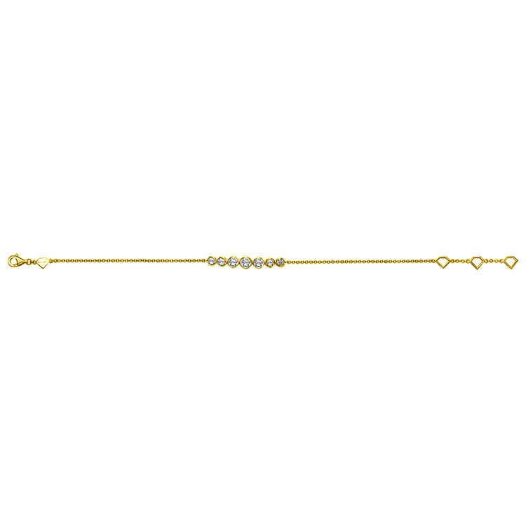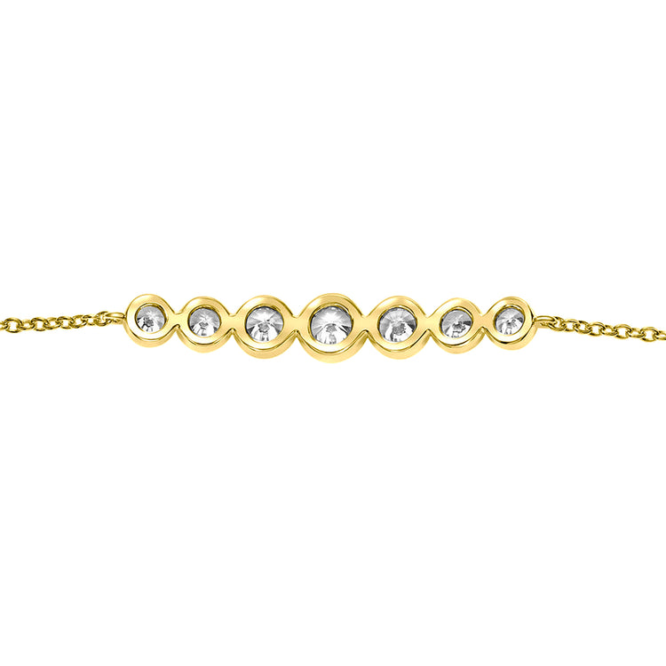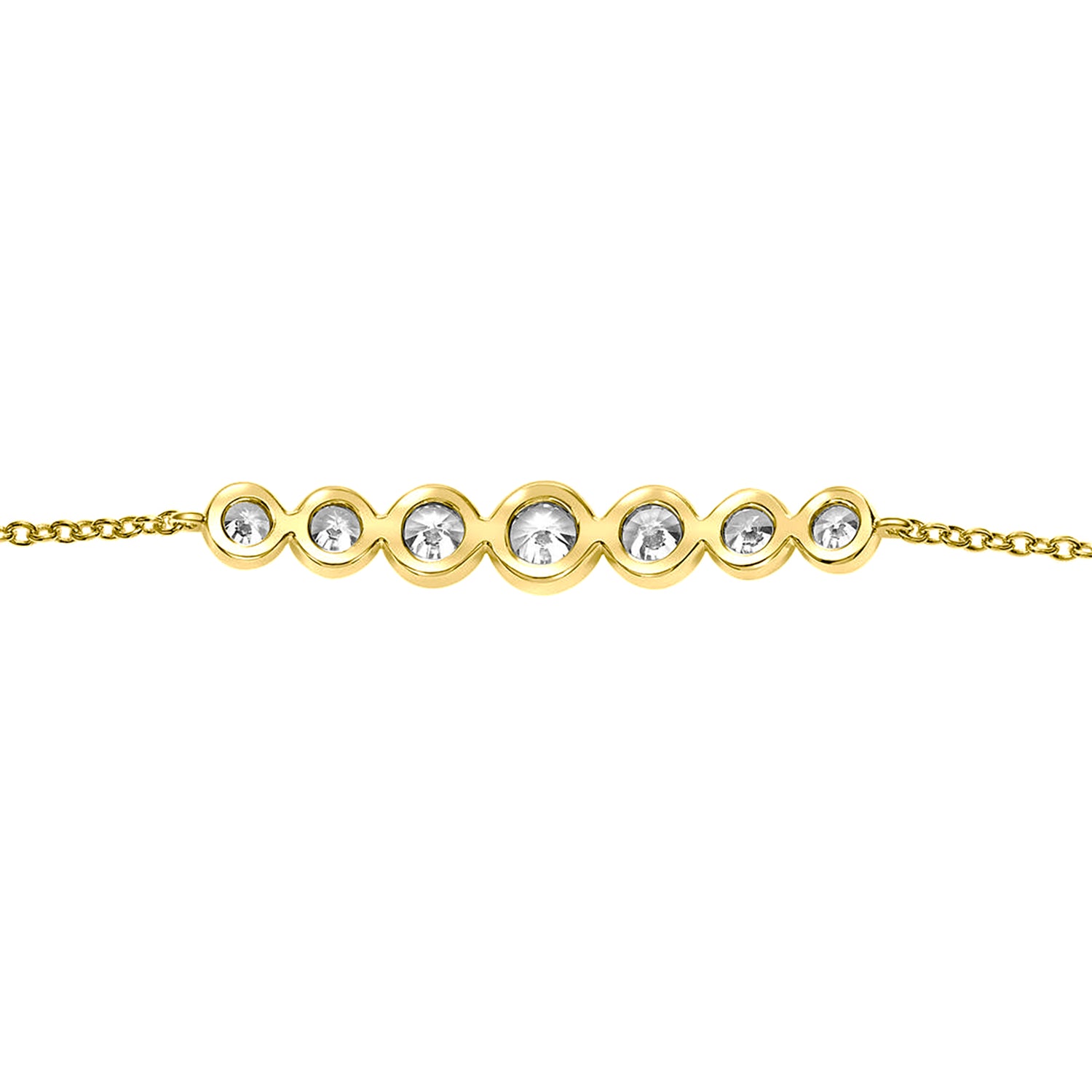 This lovely bracelet will make a beautiful addition to any jewelry collection. Crafted from 14k yellow gold and featuring bezel set lab grown diamonds, this stackable piece shimmers with modern elegance.