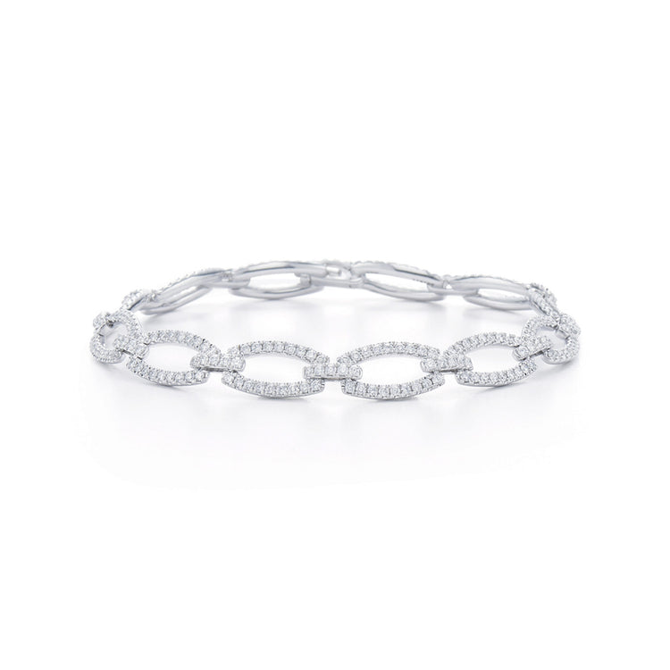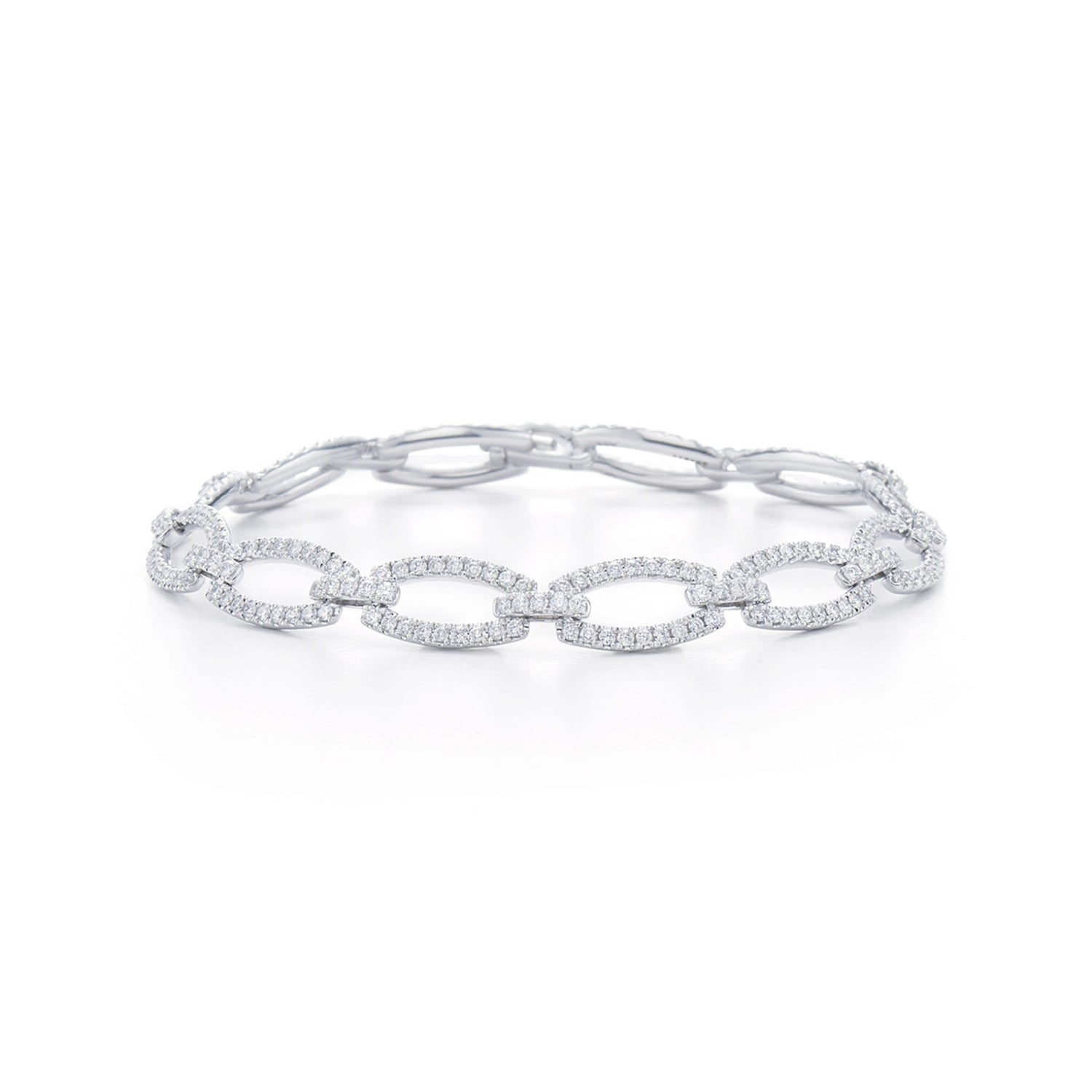 Named for the home of Kwiat's flagship store, this collection blends tradition and modernity. Here, oval links dazzle with brilliant diamonds, each cut to the world’s highest standards and handset by Kwiat artisans in 18K white gold. The design makes elegant use of negative space, letting skin peek through links for a light, feminine effect.