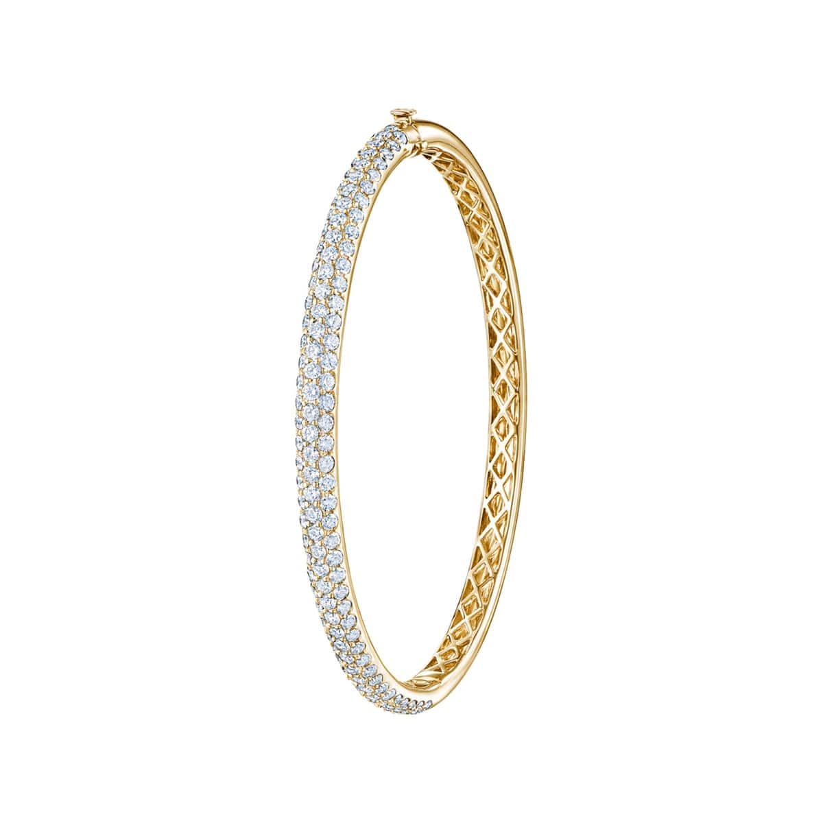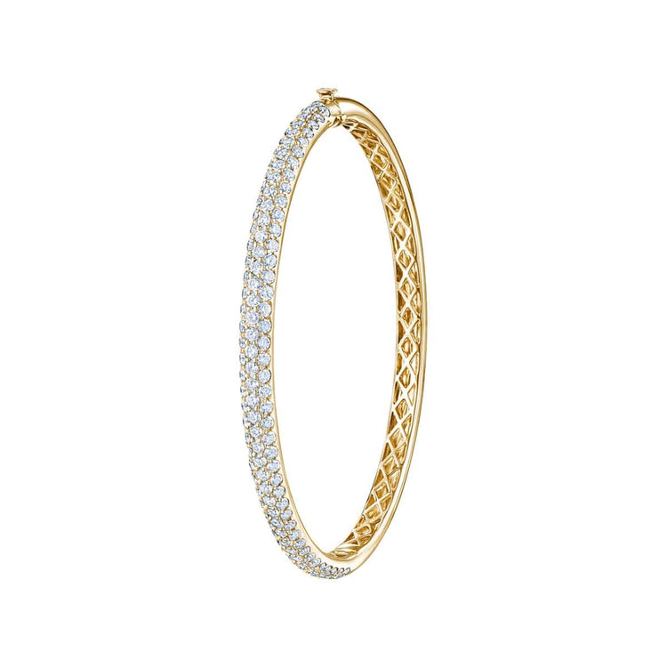 Embrace the luxurious glow of 18k yellow gold with Kwiat's Moonlight Pave Bangle. Sparkling with pave-set diamonds, its hinged design allows for comfortable wear and effortless stacking with other pieces. Shine just as bright as the stars with this timeless treasure.