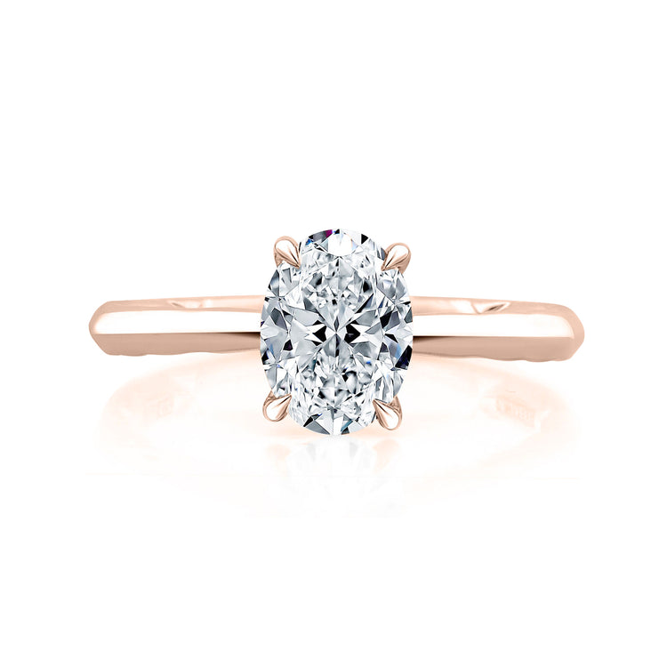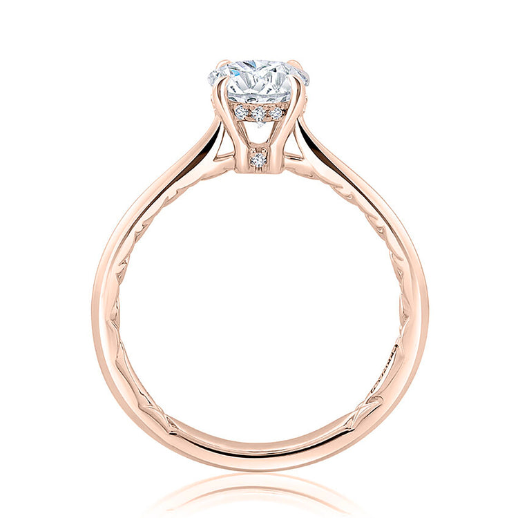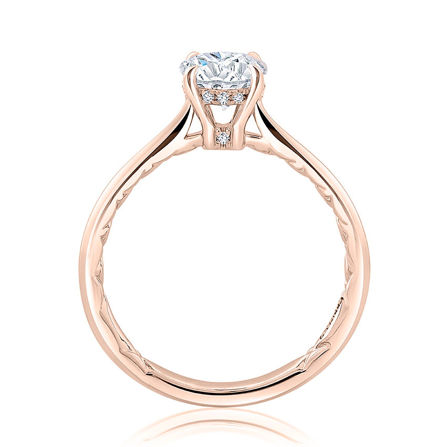 Discover understated elegance with A.Jaffe's beautifully crafted 14k rose gold Diamond Semi Mount Ring. Expertly set round brilliant diamonds add a touch of sparkle to the basket and gallery, while a polished shank with quilted interior ensures both comfort and style. Perfect for the modern bride-to-be.